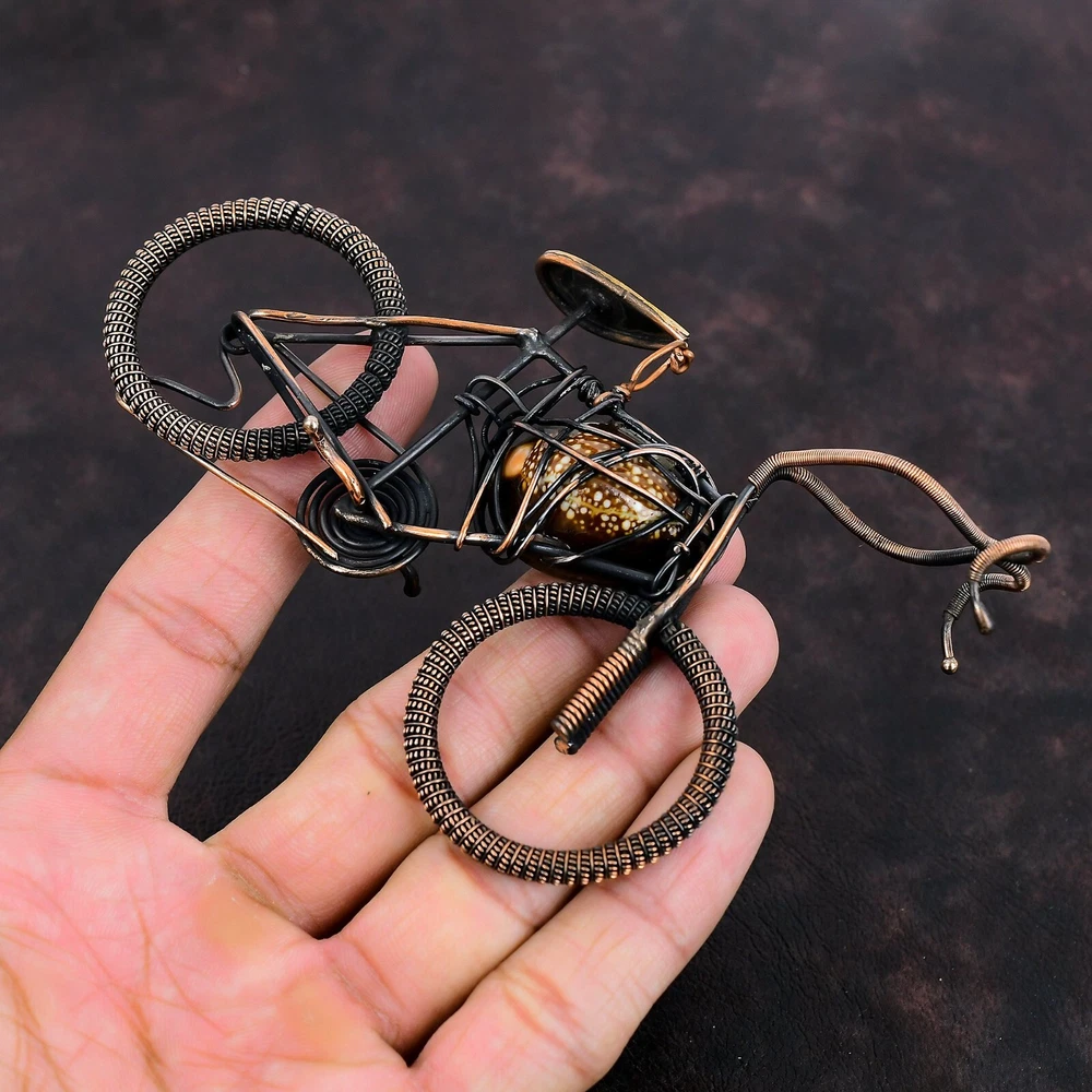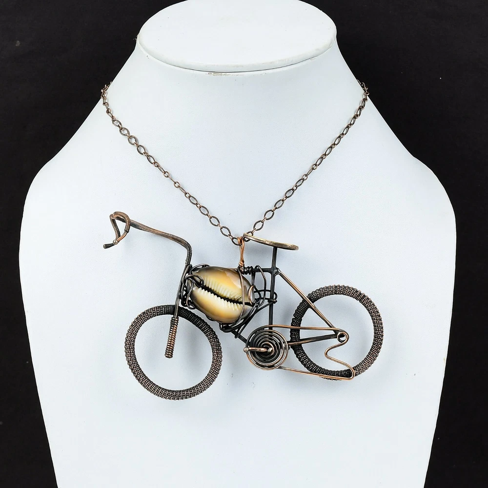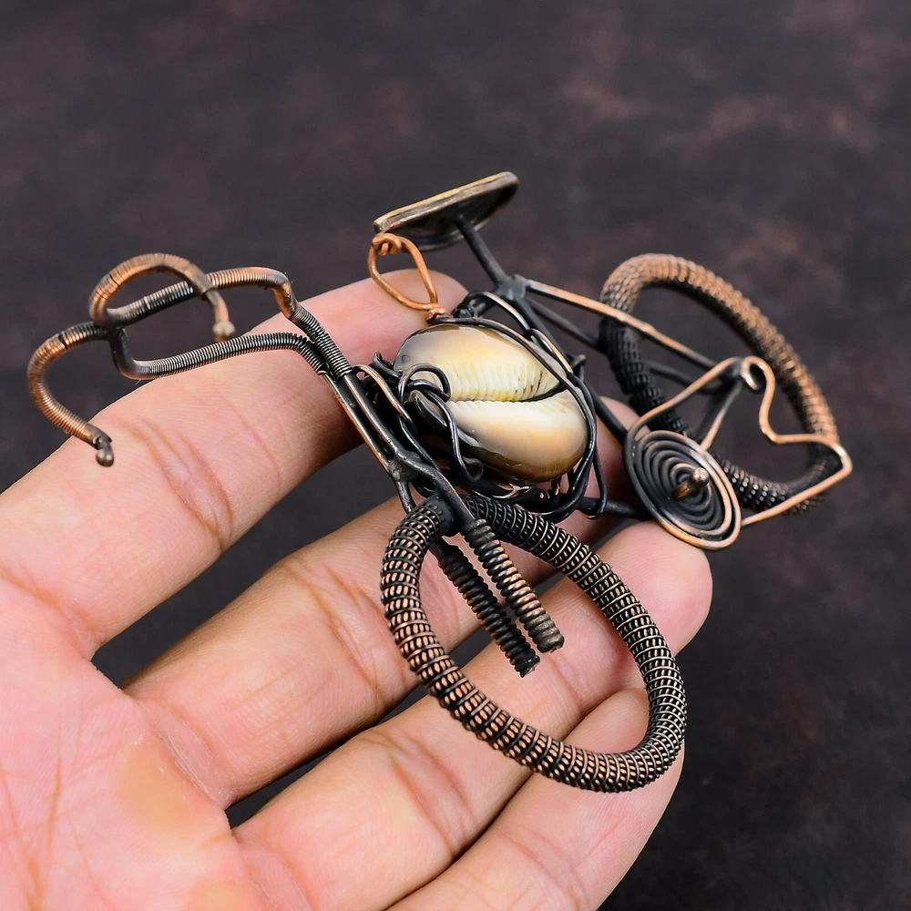 Note : Due to the natural formation of this gemstone. Slight variation in design and color are to be expected. Welcome to Silver Creation Handmade Pendant, Wire Wrapped Pendant, Wire Wrapped Jewelry, Copper Pendant, Copper Wire Pendant, Wrapped Jewelry, Wire Wrap Pendant, Wire Wrap Jewelry SKU : VFWP-4124 Gemstone : Cowrie Shell Stone Shape : Pear Metal Purity : Unknown Copper Length : 70 Millimetres Width : 115 Millimetres Copper has been used for jewelry making for thousands of years, dating back to ancient civilizations such as the Egyptians, Romans, and Aztecs. Copper was valued for its beauty, versatility, and durability, and was often used to make everything from jewelry and coins to cookware and tools. In addition to its historical significance, copper jewelry also offers several benefits. Copper is a natural conductor of heat and electricity, which makes it ideal for energy healing and therapeutic purposes. Wearing copper jewelry is believed to have various health benefits, such as improving circulation, reducing inflammation, and boosting the immune system. Some people also believe that copper jewelry has the ability to balance energy and improve mood. For Mother's Day Gift For Father's Day Gift For Promise For Valentine' Day For Halloween Party For Christmas Day Gift For New Year Party For Mom For Her If you can't find the information you need or need some advice for your design? Feel free to contact us. We are fast to reply :) All our work is made by hand with Love and Care in our workshop Thank you so much for visiting and hope you enjoy shopping with us Silvercreations is committed to delivering the best quality sterling silver jewelry to customers. As a handmade jewelry manufacturer, we offer an extensive selection of copper gemstone jewelry that showcases the brilliance of our craftsmanship. We are an experienced handmade jewelry supplier with expertise in embellishing gemstones to suit every style. We offer you the liberty to create your jewelry ensemble with sparkling, earthy, and pure gemstones. Our Talented artisans masterfully handcraft each piece of jewelry you see here. Our pieces are made with genuine gemstones.