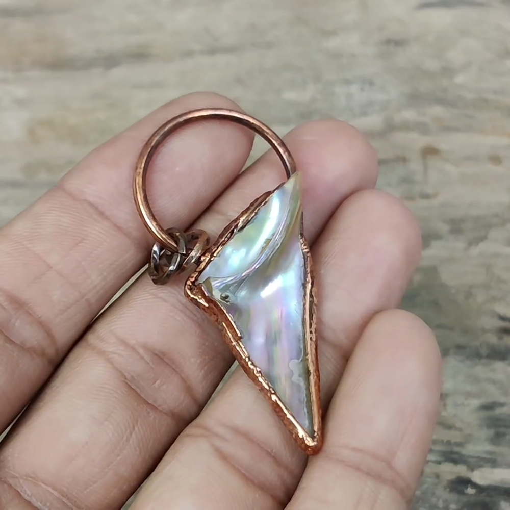 Note : Due to the natural formation of this gemstone. Slight variation in design and color are to be expected. Welcome to Silver Creation Cyber Monday Sale Natural Abalone Shell Rough New Electroformed Pendant Copper Handmade Pendant, Wire Wrapped Pendant, Wire Wrapped Jewelry, Copper Pendant, Copper Wire Pendant, Wrapped Jewelry, Wire Wrap Pendant, Wire Wrap Jewelry SKU : VZP-68 Stone Shape : Trillion Metal Purity : Unknown Copper Length : 62 Millimeters Width : 26 Millimeters Copper has been used for jewelry making for thousands of years, dating back to ancient civilizations such as the Egyptians, Romans, and Aztecs. Copper was valued for its beauty, versatility, and durability, and was often used to make everything from jewelry and coins to cookware and tools. In addition to its historical significance, copper jewelry also offers several benefits. Copper is a natural conductor of heat and electricity, which makes it ideal for energy healing and therapeutic purposes. Wearing copper jewelry is believed to have various health benefits, such as improving circulation, reducing inflammation, and boosting the immune system. Some people also believe that copper jewelry has the ability to balance energy and improve mood. For Mother's Day Gift For Father's Day Gift For Promise For Valentine' Day For Halloween Party For Christmas Day Gift For New Year Party For Mom For Her If you can't find the information you need or need some advice for your design? Feel free to contact us. We are fast to reply :) All our work is made by hand with Love and Care in our workshop Thank you so much for visiting and hope you enjoy shopping with us Silvercreations is committed to delivering the best quality sterling silver jewelry to customers. As a handmade jewelry manufacturer, we offer an extensive selection of copper gemstone jewelry that showcases the brilliance of our craftsmanship. We are an experienced handmade jewelry supplier with expertise in embellishing gemstones to suit every style. We offer you the liberty to create your jewelry ensemble with sparkling, earthy, and pure gemstones. Our Talented artisans masterfully handcraft each piece of jewelry you see here. Our pieces are made with genuine gemstones.