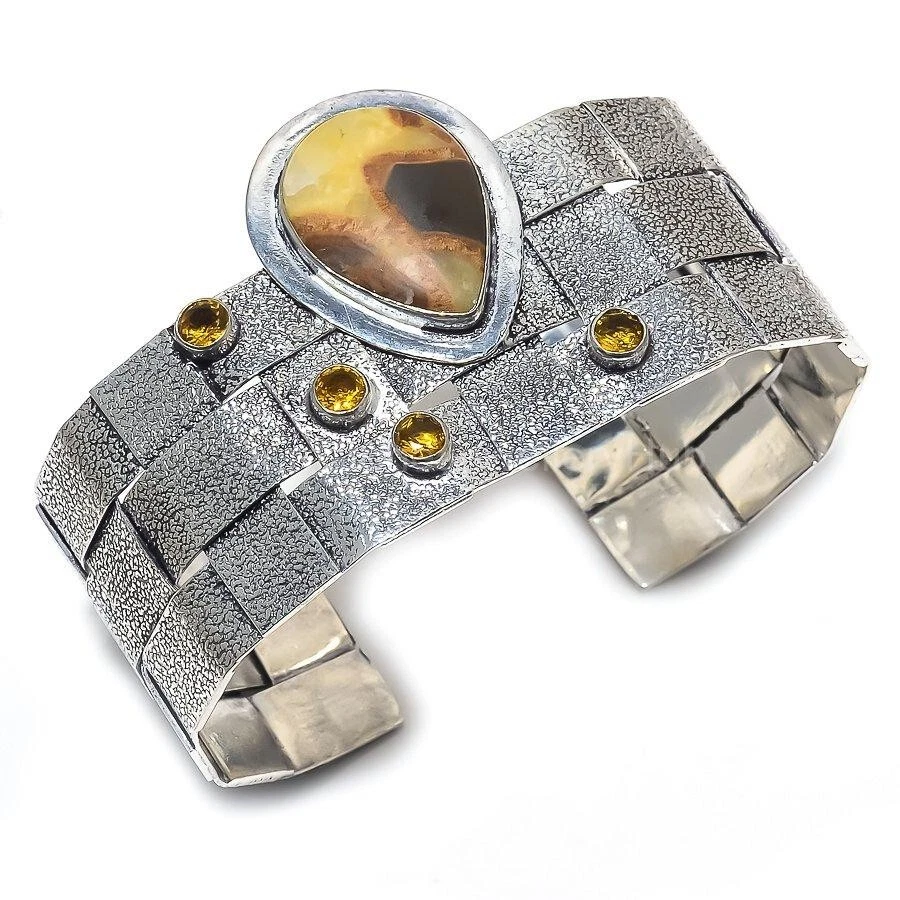 Cyber Monday Sale SEPTARIAN STONE Gemstone Citrine Sister Ethnic Cuff 925 Silver