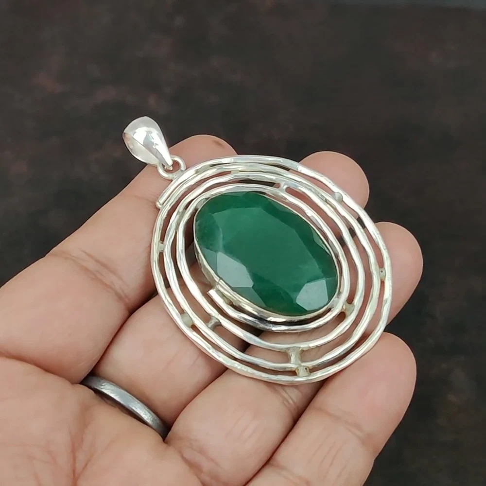 Country/Region of Manufacture: India Customized: No Occasion: Anniversary, Birthday, Engagement, Wedding Seller Notes: “Handcrafted Gemstone Pendant Jewelry” Main Stone Creation: Natural Seller Warranty: Yes Number of Gemstones: As Seen in Picture Features: Engraved, Nickel-Free, Handcrafted Secondary Stone: No Stone Necklace Length: Not Applicable Country of Origin: India Gemstone Clarity Grade: Eye Clean Main Stone Shape: Oval Setting Style: Bezel Material: Crystal, Gemstone, Stone, Metal Chain Type: Not Applicable Type: Pendant Vintage: No Style: Pendant Era: Undated Pendant/Locket Type: Charm Theme: Beauty, Bohemian, Ethnic, Healing, Love, Luck, Special Occasion, Halo, Love & Hearts Brand: Unbranded Signed: Yes Antique: No Main Stone Treatment: Not Enhanced Wholesale: Yes Closure: Not Applicable Cut Grade: Excellent Base Metal: Silver Main Stone: Zambian Emerald