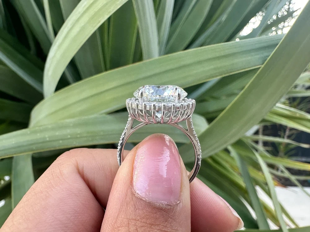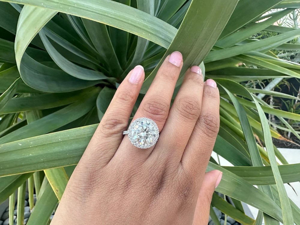 Celebrate Cyber Monday with this stunning Women's Gift 8.00Ct Lab Grown/CVD Diamond 14k White Gold Ring. This round diamond solitaire ring is perfect for special occasions like Mother's Day, weddings, anniversaries, birthdays, and Valentine's Day. The ring features a white diamond as the main stone with a total carat weight of 8.00 - 8.50 carats. With a nickel-free setting, engraved details, and authenticated by GIA, this ring is a beautiful and customizable piece of fine jewelry that will make a perfect gift for your loved one.
