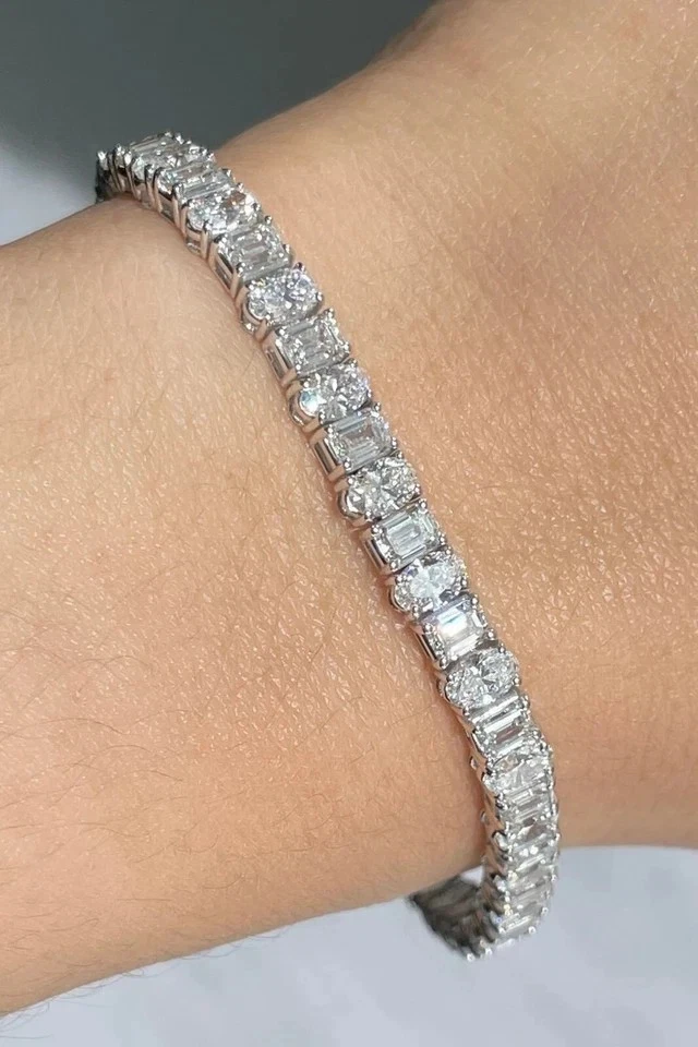 Cyber Monday Special! The Lab Grown Diamond Christmas Tennis Bracelet is a stunning piece of fine jewelry, featuring round white diamonds set in 18K white gold. This elegant bracelet is perfect for special occasions like engagements, weddings, anniversaries, or even as a luxurious Christmas gift. With a total carat weight of 9.50ct-10.00, this bracelet exudes beauty and luxury. The adjustable and nickel-free design ensures comfortable wear, while the handmade craftsmanship adds a touch of uniqueness. The charming Tennis style and perfect fit make this bracelet a perfect choice for anyone looking for a beautiful and timeless piece.