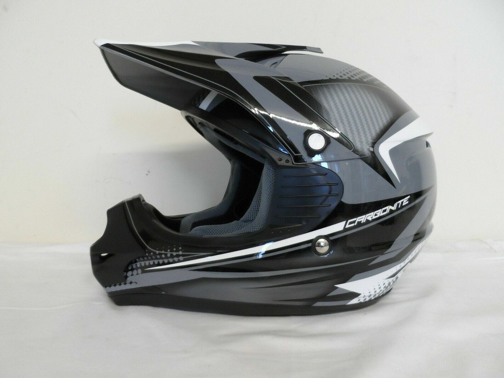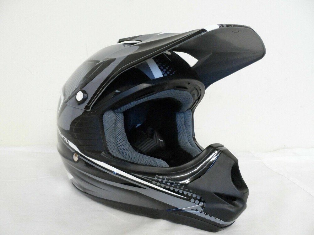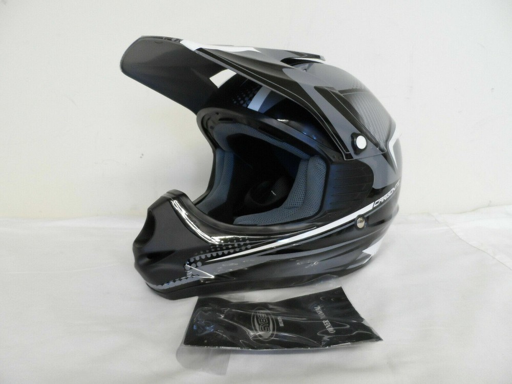 Thanks for Checking out our Store! Up for sale is a Brand New custom return Cyber UX-23 Helmet. See condition report below. An ABS shell construction with stealth aerodynamic style for motocross performance. Removable and washable air comfort liner and cheek pads, a removable and adjustable visor peak, and a subtle shell recess to allow for a better fit and seal of goggles on the face. Integrated, vented roost guard. Air flow ventilation system for cooling and comfort. Meets or exceeds D.O.T. standards. Sold individually. SIZE : YOUTH MEDIUM COLOR : BLACK / GREY Usual Retail: $79.95!! Manufacturer Part # 640231 Condition: Brand New..never used. Returned because the helmet's visor has some scrapes and paint nicks on it. Areas include on the front tip, left hand side as well as the rear of the visor. There is also some sticker residue on the front of the visor next to one of the paint nicks. See photos. Thanks for Looking and Good Luck! Don't forget to check out our other Auctions Along with Our Ebay Store for More Great Deals! 640231 Flat rate shipping applies only to lower 48 states.