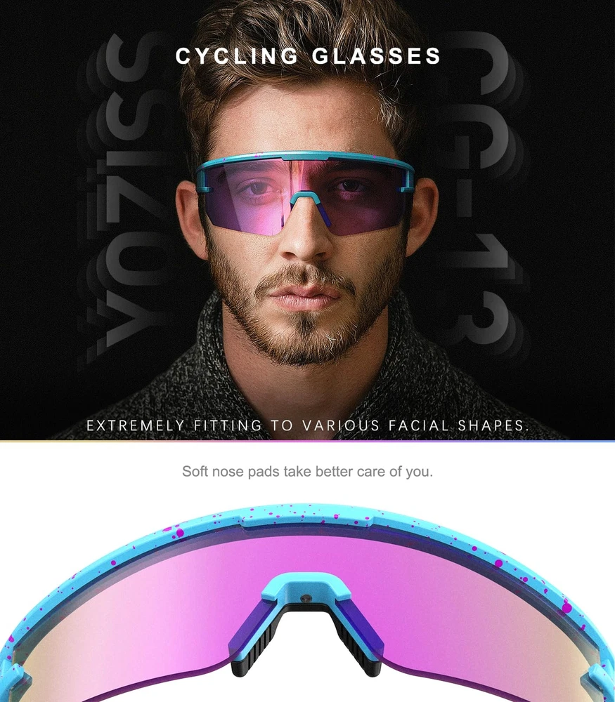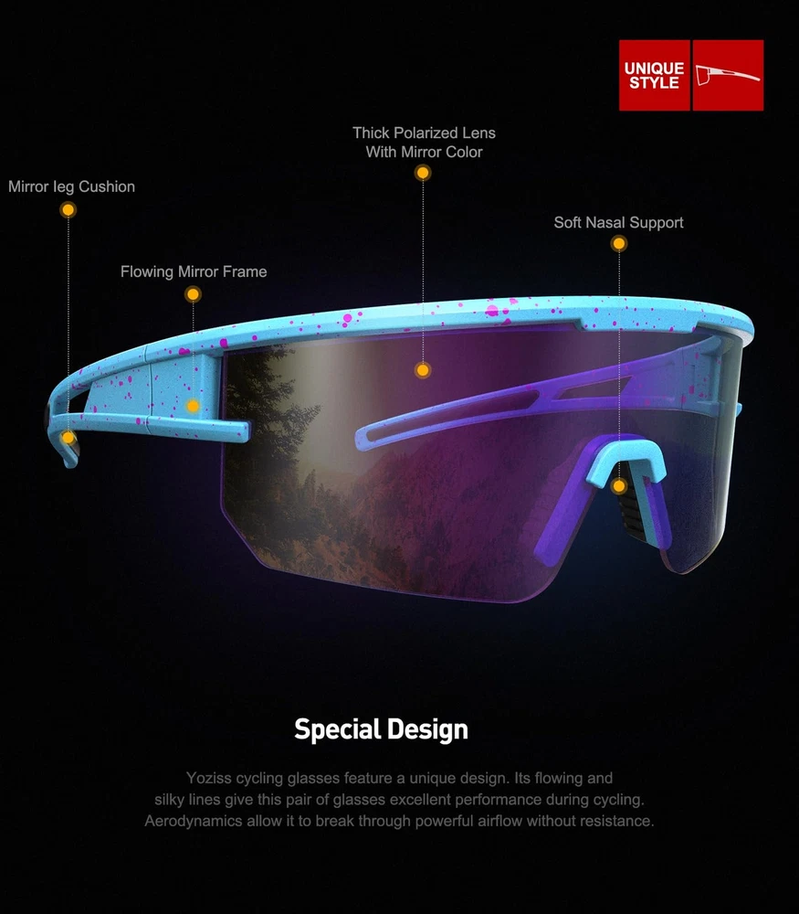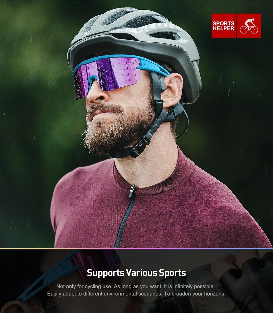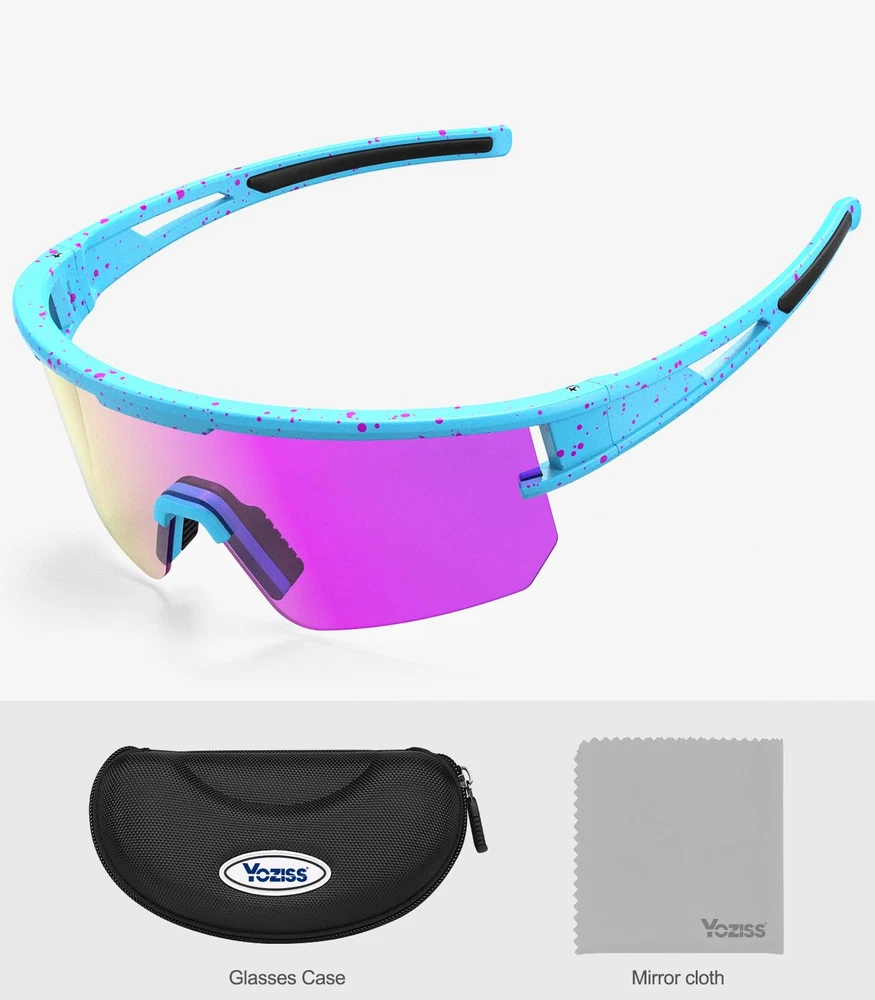 Description polarized cycling glasses give cyclists a cool look and style with oversized full lenses for a very wide field of vision. Durable, flexible and lightweight TR90 frames with a unique design also ensure that the lenses won't pop out. Polarized multi-coated lenses with UV400 protective coating are shatterproof and scratch-resistant, providing excellent color contrast and reducing ambient reflections for a more confident ride. Provide the best professional protection for your eyes. Adaptable to all kinds of sports: Cycling glasses are suitable for motorcycle, bicycle, driving, running, baseball, fishing, racing, golf, hiking or other outdoor activities enthusiasts, also a great gift. Product Information Frame Material: TR90 Lens Material: TAC Optical properties: polarized, UV400 Applicable people: adults (men and women), teenagers. Package Includes 1 x Polarized glasses 1 x Glasses cloth 1 x Storage case Tips Do not touch the lenses with your hands or sharp objects. Wash them with neutral detergent or soapy water and dry them gently with a clean soft cloth. To avoid damage, please do not wipe the sunglasses with paper towels or clothing. UV400 Protection: cycling glasses are coated with UV400 protection coating, anti-ultraviolet sports sunglasses can filter out 100% of UVA/UVB/UVC and harmful blue light up to 404nm, help reduce visual fatigue, clearer vision, better protect eyes HD Polarized Lenses: HD Polarized Sunglasses adopt TAC lens material, which is scratch and impact resistant. High-quality lens restore true colors, eliminate reflected light and scattered light, make the scenery clearer and softer, and perfectly protect eyes. Curved lens have less air resistance, suitable for high-speed riding Adjustable Nose Pads: The cycling sunglasses nose pads are freely adjustable, and the ergonomic design of the bendable temples is suitable for any face shape. The natural rubber nose pads provide non-slip grip when sweating, help increase retention, and help keep the cycling goggles firmly in place without sacrificing comfort Lightweight TR90 Frame: The extremely narrow TR94 frame design reduces the weight of the frame, providing durability and all-day comfort. Whether driving, climbing, playing baseball, fishing, playing golf, running, hiking, cycling, you will not feel uncomfortable even if you wear it all day, allowing you to enjoy outdoor sports! Portable glasses case: The cycling glasses use polarized lenses, which are designed to enhance color, contrast and details-available in a variety of tints to match any style of appearance. The package includes a custom hard glasses case and a lens cleaning cloth, so you can take it with you at any time.