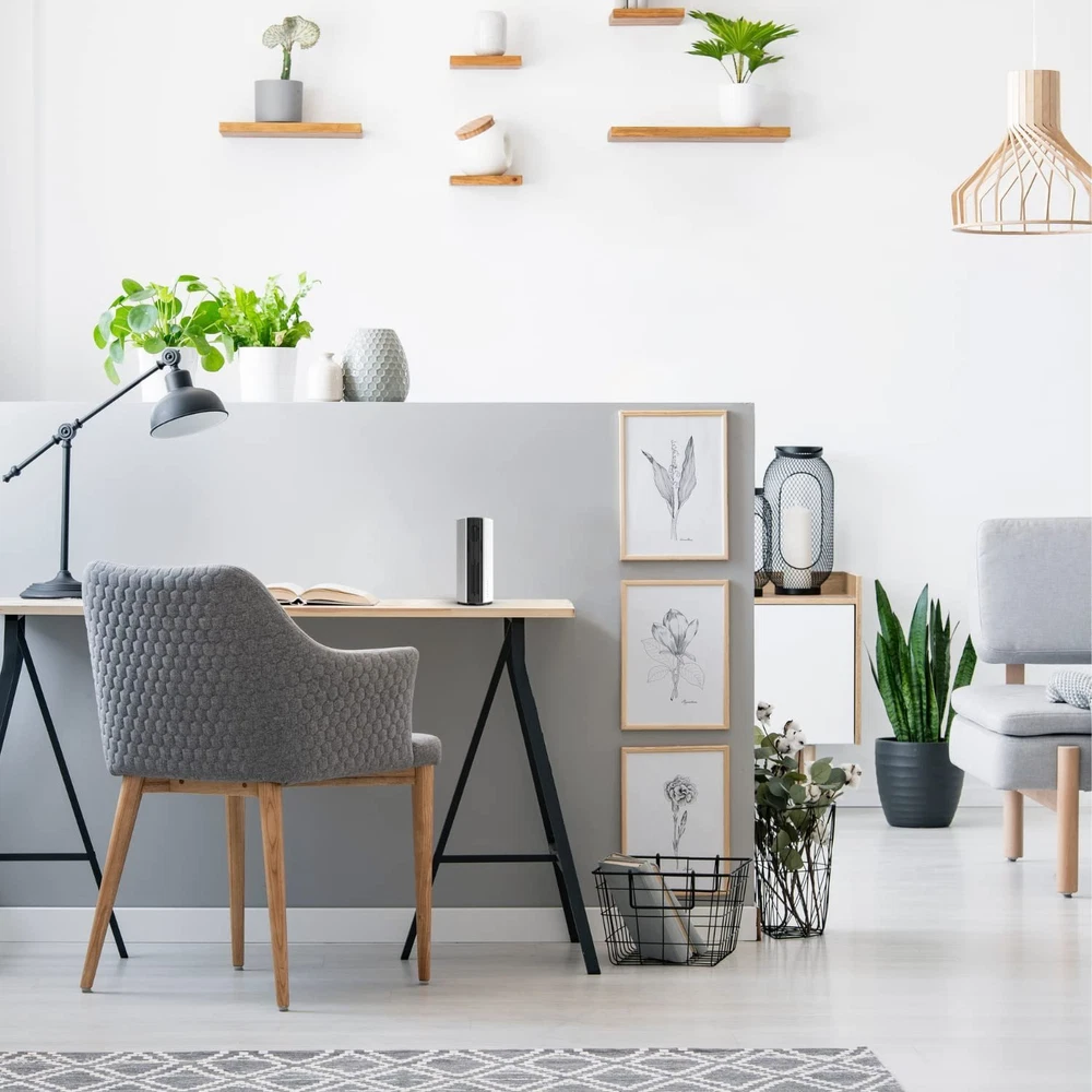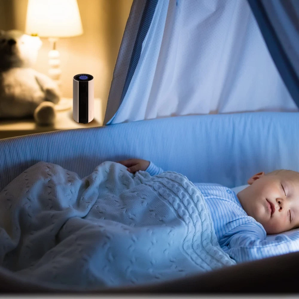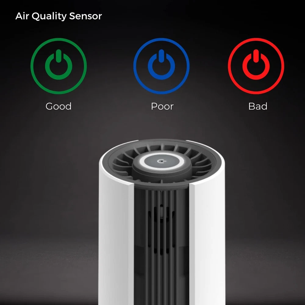 myGEKOgear GUAO2 Air Purifier, White Cleaner Air with Turbo Cyclone Technology: Clean the air around you from 99.99% of dust, pollen, smoke, odors, and pet dander. Equipped with the cylindrical 360° air intake and HEPA 13 activated carbon filter so you can start breathing clean air wherever you are. Air Quality Sensor: Equipped with intelligent sensors to detect the current air quality. Green for good air quality, blue for poor air quality, and red for bad air quality. Essential Oil Diffuser: Keep the air around you smelling lovely. Periodically drip in a few drops of your favorite essential oil in the designated oil space in the filter to keep your space smelling fresh and clean. Sleek & Lightweight Design: The O2 air purifier weighs 0.5lbs so it's portable and sleek to take with you anywhere. It can power on horizontally or vertically, which ever position fitting your needs. Low Noise Levels (37-48db Full Speed): Grab and go with the O2 to take in your car, library, office, and many other quiet spaces without disturbing those around you.