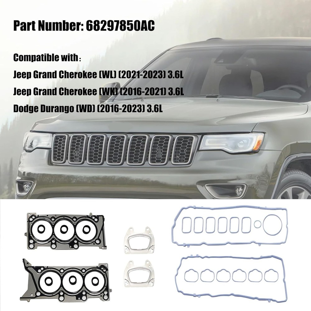 Part Number: 68297850AC Sealed structure type: Multilayer Steel (MLS) Installation location: engine cylinder head Material: Multilayer Steel (MLS) Fitment: For Jeep Grand Cherokee (WL) (2021-2023) w/ 3.6L engine. For Jeep Grand Cherokee (WK) (2016-2021) w/ 3.6L engine. For Dodge Durango (WD) (2016-2023) w/ 3.6L engine. Package Includes: 1Set Engine Cylinder Head Gasket (as pictured) On Jul 29, 2025 at 02:31:12 PDT, seller added the following information: On Jul 31, 2025 at 18:20:28 PDT, seller added the following information: