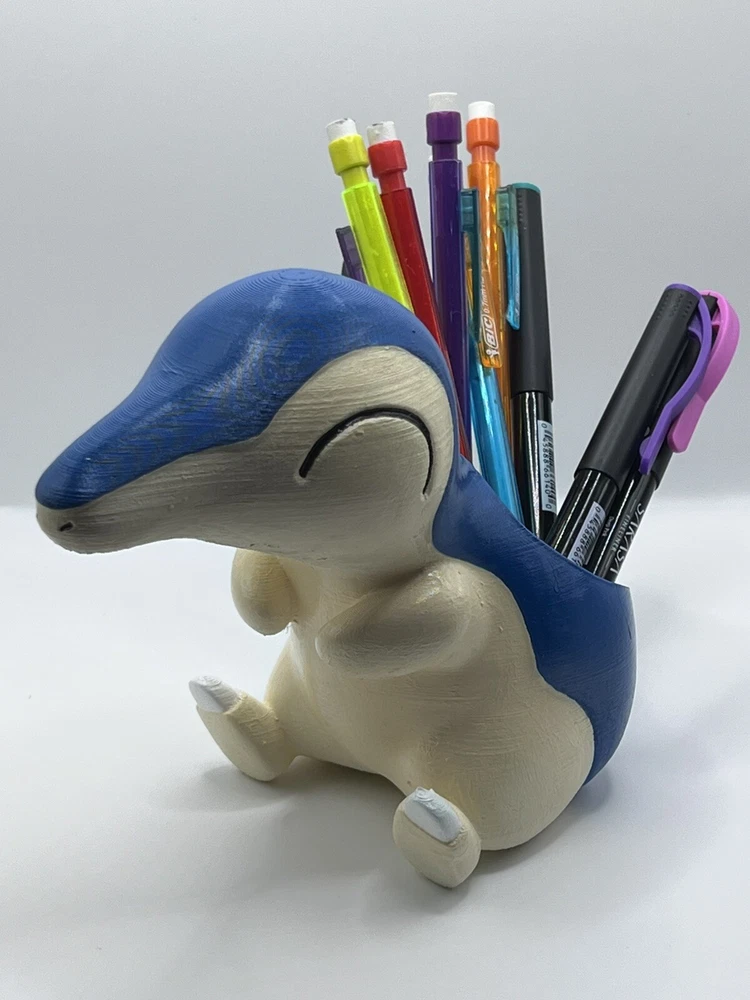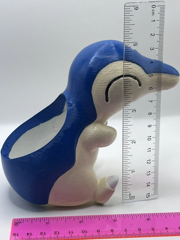 3D printed and hand painted Cyndaquil planter or desk cup. Printed with PLA+. Dimensions can be seen in the photos. PLEASE BE SURE TO CHECK THE PHOTOS. You get the exact item in the photos! Plant and pens are NOT included! Each planter/cup is sealed with a coat of clear coat. If you have any questions, feel free to message me. Disclaimer: These are hand painted by myself, personally. I am by no means a professional painter. They are not perfect and may have flaws with the painting. You are supporting a person on disability looking for a hobby to keep themselves busy. So thank you for understanding and supporting my hobby! You get the exact item in the photos. Each time they are listed, new photos are uploaded as each one is unique and never painted or printed exactly the same. I try to always get your items out the same or next day! I pack them with care so they reach you intact. Check my other listings for other 3D printed planters!