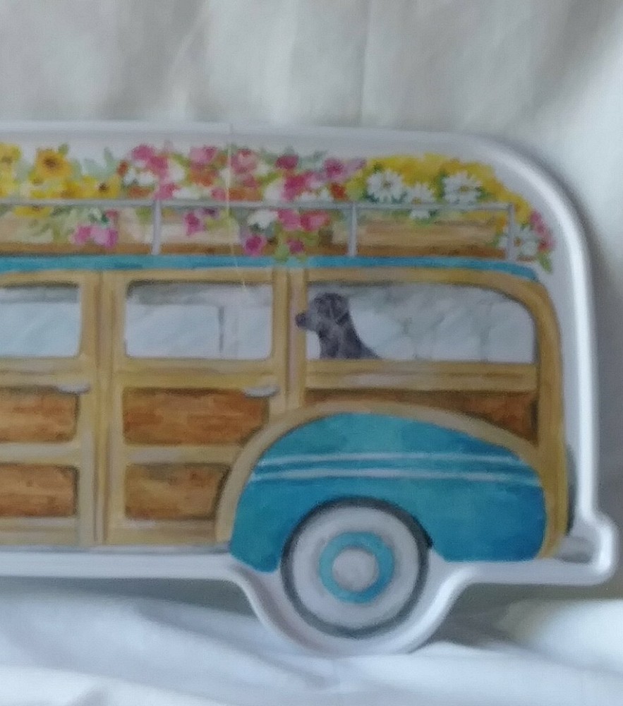 Party Platter Woody Wagon Dog Flowers Cynthia Coulter Melamine Tray Melamine plastic Tray is Medium thickness Approx 19.5" Long 9.25" Wide x 3/4" Tall Dishwasher safe top rack NO microwave. New - never used Please view all photos zooming in on them as they are part of the description for you to judge condition. Will ship either USPS Priority, Fedex or UPS depending on the location of where buyer lives IMPORTANT - if whips via UPS or Fedex they require a home delivery address as they cannot deliver to post office boxes - NO Post Office Boxes