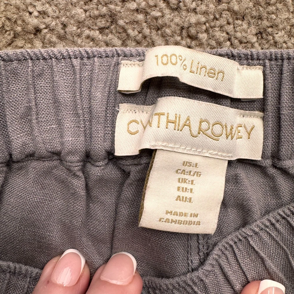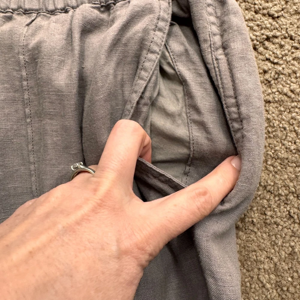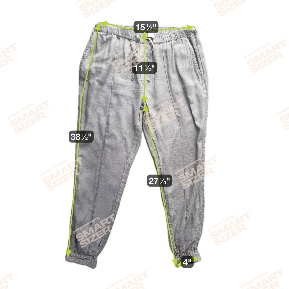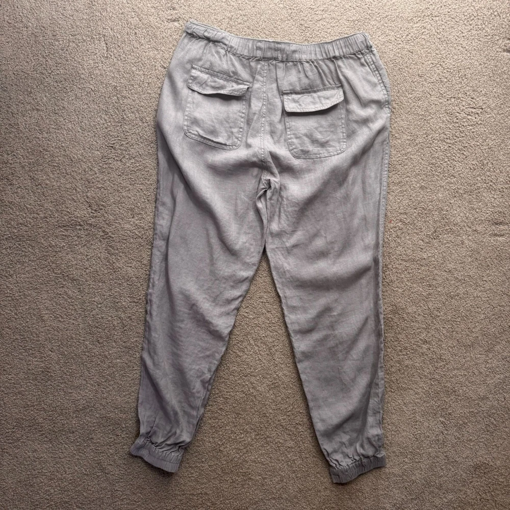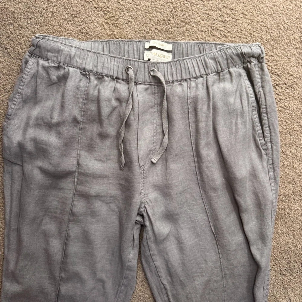 Once upon a time, comfort and style met in a pair of jogger pants. Crafted from 100% linen, these Cynthia Rowley joggers offer a breathable fit for leisurely days and casual outings. The gentle gray hue complements an array of tops, while the elastic waistband ensures ease of movement. With functional flap pockets, every detail promises practicality. • Elastic Waist With Drawstring • Two Flap Back Pockets • Machine Washable • Lightweight & Breathable Fabric Top to bottom = 38.5 inches, waist = 15.5 inches, inseam = 27.25 inches