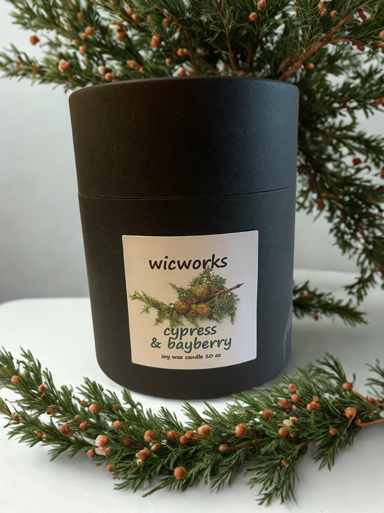 This upscale scent opens with cooling eucalyptus followed by cypress, moss and bayberry that blend with undertones of patchouli and fir. This favorite fragrance brings the ambiance of the pristine woods into your home. A great clean aroma anytime of the year. Handmade highly scented soy wax candle with all natural ingredients, no artificial fragrances or dyes. All candles are made to order. Burn time is more than 40 hours. Comes in a beautiful green glass candle jar with a silver metal decorated lid great for any decor. Candle measures 3 1/4 inch diameter and is 3 3/4 inches tall with lid. Comes in a stylish black tube container as a gift box. Made with a wood wick that burns cleaner and longer, sounds like a crackling fire. Please use caution when burning candle, keep out of reach of children and away from drafts. After burning, trim wick to 1/4 inch. If you have and problems or questions, please contact me via Ebay, Thank you.