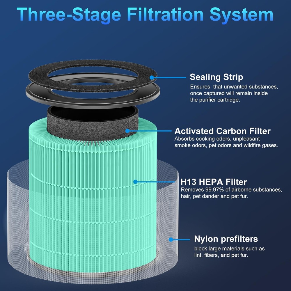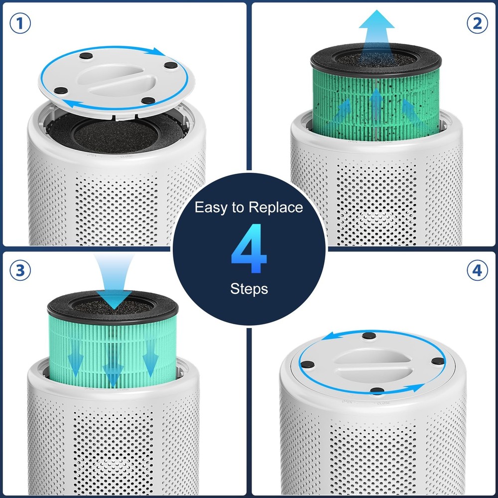 [D10 Filter] Exclusively designed for D10 purifier to maintain its peak performance. With cost-effective price to save much cost for your all-year-round cleaning need. It is recommended to replace every 3-6 months depending on the usage and quality. [D10 Filter] Exclusively designed for D10 purifier to maintain its peak performance. With cost-effective price to save much cost for your all-year-round cleaning need. It is recommended to replace every 3-6 months depending on the usage and quality. [Superior Quality] Our D10 filter is made of premium non-woven fabric and , ensuring high-efficiency cleaning performance and safe to use for your whole family. [Better , Better Life] The filter features 3 in 1 filtration System: Pre-filter, H13 true HEPA filter, and filtration system work together to purify 99.97% of 0.3-micron particles from dust, pollen, PM 2.5, pet dander, smoke, cooking smell, hair and odor. Effectively improve indoor quality and create a healthy environment. [Easy to Replace] Simple to replace the filter as the steps below: 1. Flip the purifier upside down and rotate the bottom cover 2. Remove the cover and the used filter, and replace them with a new filter 3. Place the bottom cover back onto the machine and twist it clockwise until you hear it click in place 4. Press and hold for 3 seconds to reset the filter indicator. [Buy with Confidence] Filter is sealed to protect their life. Remove the plastic packaging before the filter if you encounter any issues with your filter or purifier, you are welcome to freely. We’re ready to help you anytime.