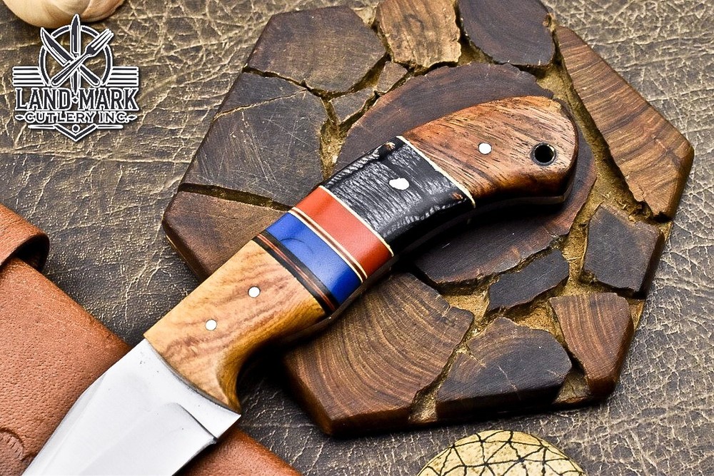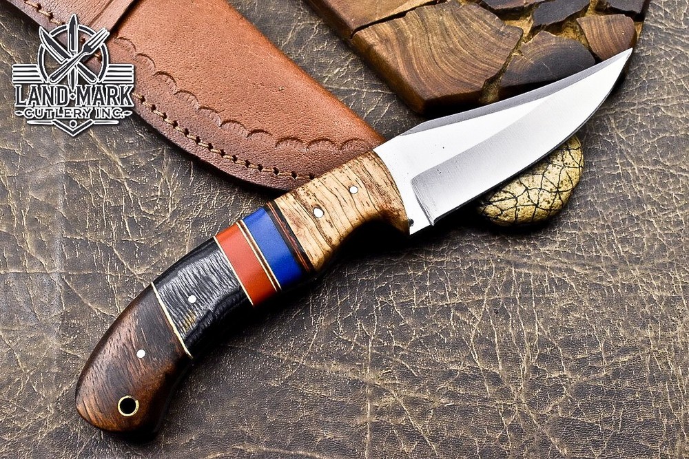 D2 Steel Hunting Skinner Knife with Multicolor Wood Handle