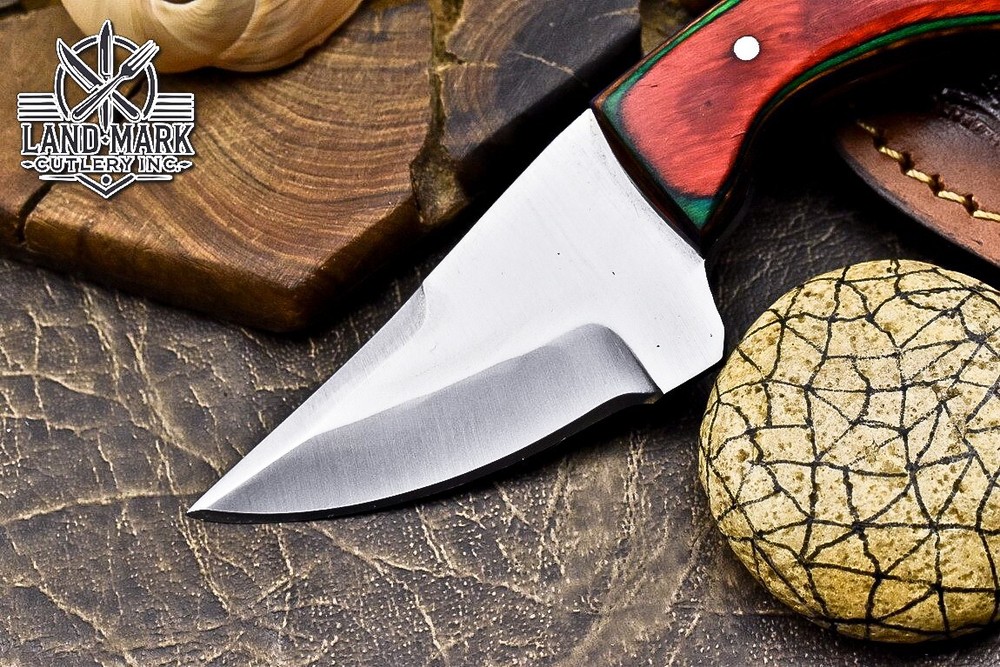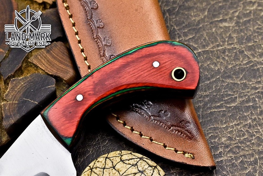 Custom Hand Made DAMASCUS STEEL HUNTING KNIFE WITH PAKKA WOOD HANDLE We offer a shipping discount for More then one purchased . And discount will be apply on combine invoice, Discount will not apply on separate payment. ITEM DETAILS OVER ALL LENGTH 3.0 inches long (Approx) HANDLE LENGTH 1.5 inches long (Approx) BLADE LENGTH 1.5 inches long (Approx) BLADE HARDNESS 58-60 HRC Which Holds The Sharp Edge For Long Time. HANDLE PAKKA WOOD COVER LEATHER SHEATH This Awesome custom made KNIFE has a nice hand forged with the combination of 4340 & 1080 steel. HOW OUR DAMASCUS IS MADE: All our Damascus is real and not just an acid etch. Damascus is a mixture of 1080HC and 4340 nickel carbon. You heat them up together and then fold the bar over and over to get the desired layers, ours are 396 layers. Then you burn the blade in acid, and it turns the nickel satin color and the high carbon turns blackish gray. This is how the layers are exposed to show the layers of the new steel created coined "Damascus". All Damascus is acid etched to show the layers. If you high polish the metal it will be shinny satin like all steels. Only after you burn the sides of the blade with acid do you see the layers of the two steels. Makes sense? After we make our knives we high polish the handles and put an edge on the blade. The high polishing buffs off the acid burned layer of the handle, and the blade edge is sharpened and the acid burned edge becomes satin. You can re-burn the tang of the blade near the handles and the edge of the blade and it will show the layers once more. All our knives are hand made, durable and unique ***** YOU WILL RECEIVED THE SAME KNIFE Qality Standards Our Damascus blades are made from high quality non-stainless steels which rival or exceed any Damascus blade made from the 10 series with 4340. Our Damascus combination has taken years to perfect and has been tested under a variety of application which will offer professional performance in categories of toughness, strength (lateral stress) and edge honing and holding ability. In a 5 spot Rockwell test our blades will average near or close to 58 which offers a perfect balances between its toughness and strength.Our blades due to carbon content need to be regularly treated with wax and/or 3 in 1 oil to maintain its superior quality. Questions if you have any question feel free to send us message we aim to answer all questions within 24 hours Feedback If you are not satisfied with our service please contact us before leaving any negative or natural feedback. We will resolve all issues as quickly as possible. Disclaimer We are not responsible for any injuries associated with the use of our tools. Our products are intended for legal use only by responsible buyers. Therefore, we will not sell our products to anyone under the age of 18. Before bidding please check your country laws as some countries Custom don't allow this. If your purchase is held by Custom Authorities in your country/State we will not be responsible for that and no refund will be issued Shipping We offer a 20% shipping discount for More then one purchased . And discount will be apply on combine invoice, Discount will not apply on separate payment We ship within 24 hours after receiving complete payment but this can be delayed due to week ends or Governments and Religious Festivals . . This is beyond our control and we apologize for this inconvenience. Precautions Our Tools are very sharp so open and use them very carefully We are not responsible for any injuries associated with the use of our tools Tips to Care knife 1. NEVER STORE YOUR KNIFE FOR LONG TIME IN LEATHER SHEATH. 2. LEATHER CAN ABSORB WATER, WHICH WILL RUST THE KNIFE. 3. ALWAYS CLEAN THE BLADE AFTER USING WITH OIL OR WAX