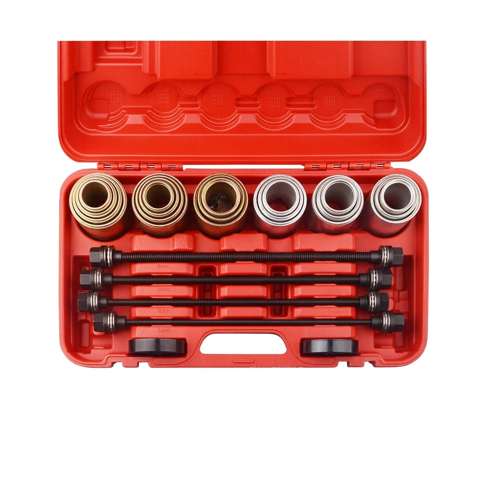 DA Yuan Universal Press and Pull Sleeve Remove Install Tool Bushes Bearings Kit Description Features: Compatible Vehicles : Applicable to many cars and LCV ,HGV Engines Package: 20 x Press Sleeves, Inside Diameter from 34-72mm in 2mm steps, Outside Diameter from 44-82mm in 2mm steps, 4 x Pulling Spindles with nuts and thrust bearings (M10. M12. M14. M16) Product Usage: For Removal and Installation of Bearings, Bushes, Seals and cut down the possibility of damaging the bearing or suspension housings Benefit : Created from rugged drop forged construction and heat treated to withstand difficult and rugged jobs, making this tool set a long lasting and reliable tool Important Note: When doing automotive maintenance always make sure all the tools are correctly used and wear safety glasses and gloves . Any question or problem, feel free to contact us Product Details: Manufacturer: Yinyuan Tools Brand: DAYUAN Item Weight: 43.1 pounds Package Dimensions: 21.5 x 13.5 x 6 inches Item model number: YT-1097 Is Discontinued By Manufacturer: No Manufacturer Part Number: YT-1097 Date First Available: January 3, 2019 Delivery We Do Not Ship Outside of the Continental US. Return Policy All items qualify for returns within 30 days of receipt. Buyer is responsible for return shipping on any item that is not damaged. Feedback We take our reputation seriously, we buy and sell online, so we understand the value of trust. If you are unsatisfied with your order, please contact us and we will work with you to resolve it to your satisfaction.