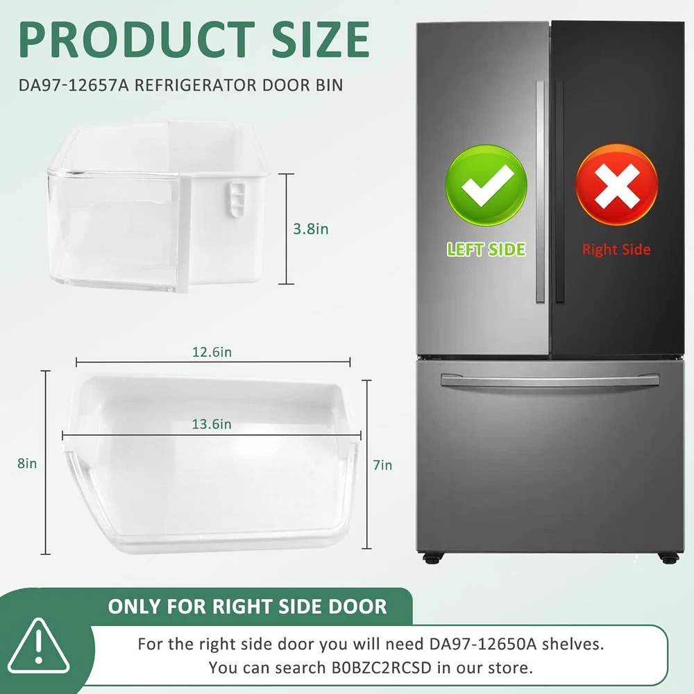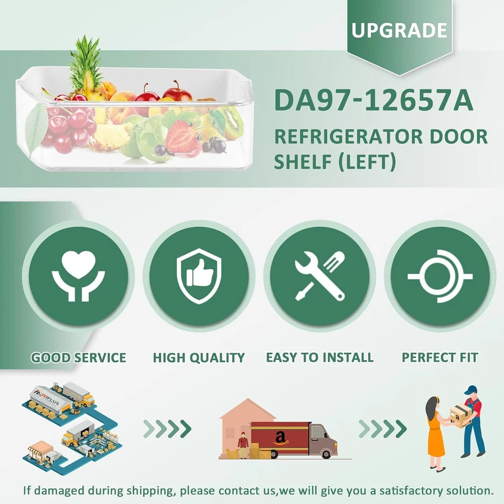 DA97-12657A Compatible for Samsung RF263beaesr RF260beaesr RF261beaesr Samsung Fridge Shelf Replacement by MIFLUS,Left Side Samsung Refrigerator Parts/Samsung Refrigerator Door Shelf Bin Product Details FIT SAMSUNG REFRIGERATOR MODEL:Series of RF26HFPNBS,RF260BEAESR,RF261BEAES,RF261BEAEBC,RF261BEAEWW,RF260BEAESG,RF260BEAESP,RF260BEAEBC,RF260BEAEWW,RF262BEAESR.Please continue browsing,we describe the full range of applicable models on the details page. Use "CTRL+F"to help you find your model to see if it fits samsung fridge door shelves EASY TO USE SAMSUNG FRIDGE REPLACEMENT PARTS:No tool needs to install DA97-12657A samsung refrigerator door shelf,only takes five minutes or less,After washing the refrigerator door shelf bin,slide the door shelf bin into the door just above the desired location and push it down until this sam-sung fridge replacement shelf snaps into place.Very simple,save a lot of money SAM-SUNG REFRIGERATOR DOOR SHELF BIN DA97-12657A:Only spend little to repair your DA97-12657A refrigerator samsung refrigerator door shelf replacement DA97-12657A made of PE material with non-polluting,safe,hygienic,sturdy and unbreakable.Choose our samsung refrigerator door shelf replacement DA97-12657A let you use more at ease AFTER-SALES SERVICE:Your satisfaction is our top priority.If you're not satisfied with the DA97-12657A samsung refrigerator shelf replacement ,We will give you acompensate or resend the goods according to the actual situation.Any question regarding the DA97-12657A samsung fridge door shelves,Please feel free to contact us