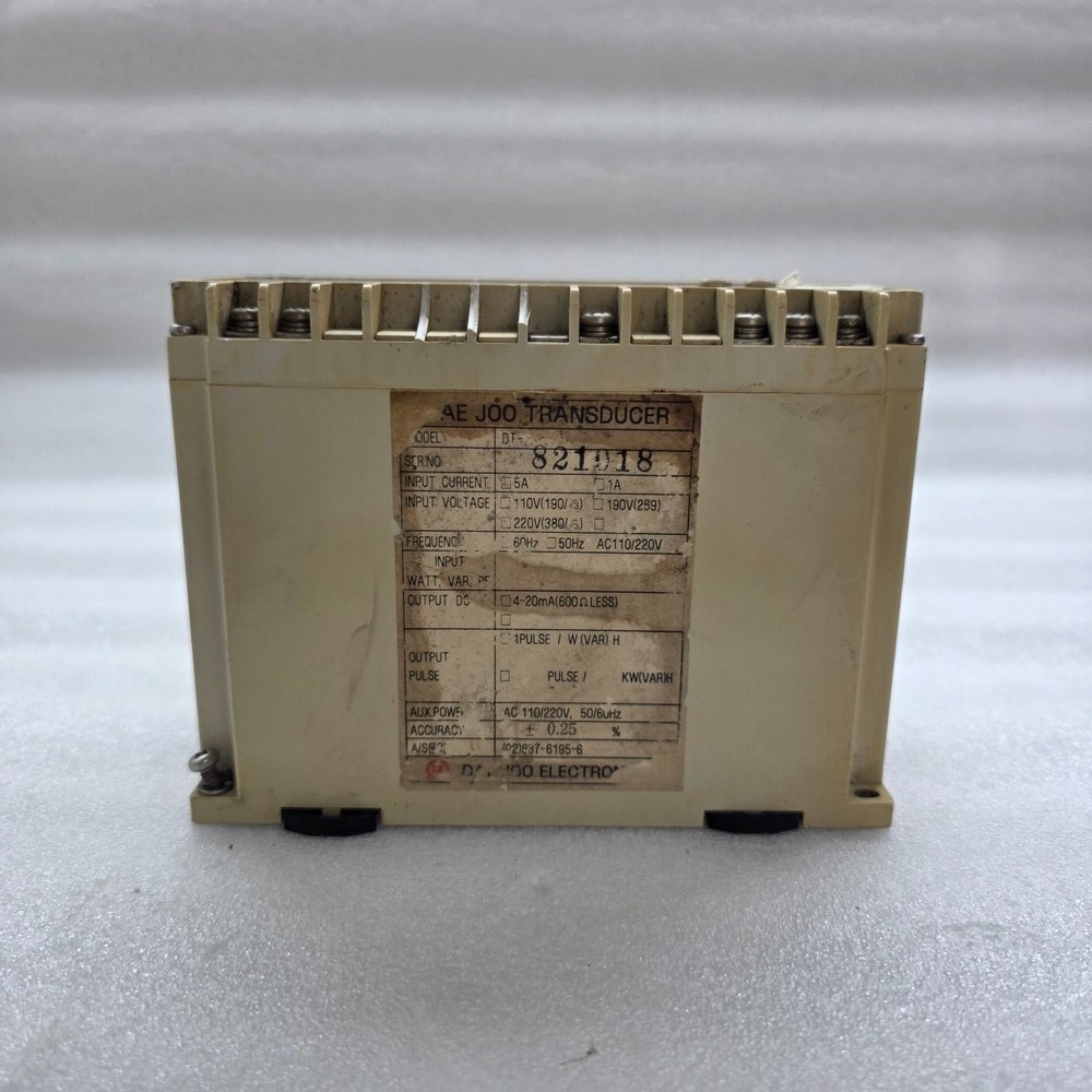 We are pleased to offer DAE JOO 303W WATT TRANSDUCER 110-220V Product Detail: DAE JOO 303W WATT TRANSDUCER 110-220V WATT TRANSDUCER AUX POWER:110-220V Shipment processing time: All orders are processed within 1-2 business days. Orders are not shipped or delivered on weekends or holidays. Shipment confirmation & Order tracking: You will receive a Shipment Confirmation email once your order has shipped containing your tracking number(s). The tracking number will be active within 24 hours. Customs, Duties and Taxes: We are not responsible for any customs and taxes applied to your order. All fees imposed during or after shipping are the responsibility of the customer (tariffs, taxes, etc.). Damages: In case of damage or lost of shipment during transit, We will investigate the matter and provide the satisfactory resolution. Returns Policy: We offer return or exchange of ordered item up to 30 days of receipt of goods in subject to certain condition. In case of damaged goods we shall offer the replacement or refund for the ordered item. If you require any more details, request you to send us the direct message through eBay for early resolution. Thanks