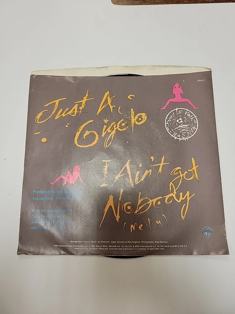 DAVID LEE ROTH-JUST A GIGOLO/I AIN'T GOT NOBODY 7" 45 RPM RECORD LIKE NEW OOP. Condition is Used. Shipped with USPS Media Mail.