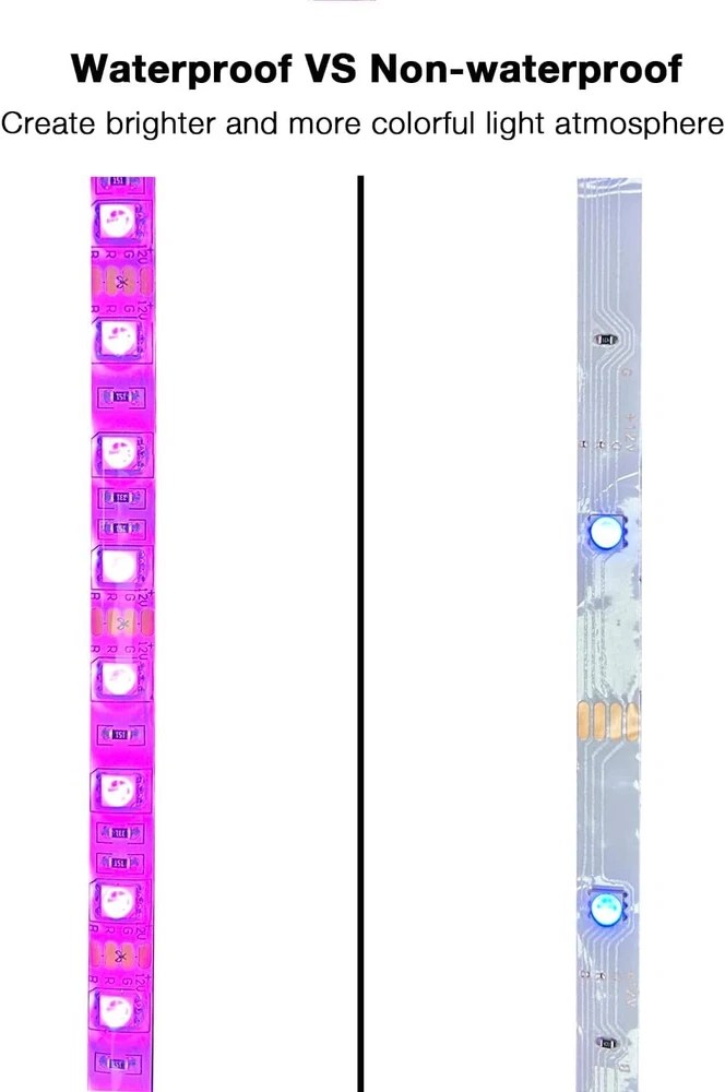 DAYBETTER Waterproof Led Lights for Bedroom, 32.8ft (2 32.8ft, Multicolor Product Details Color: Multicolor Brand: DAYBETTER Indoor/Outdoor Usage: Indoor Special Feature: Waterproof, Remote Controlled, Color Changing, Dimmable, Linkable, Adjustable Light Source Type: LED Power Source: Corded Electric Light Color: Multicolor Theme: Tv Occasion: Christmas Style: Modern Material: Plastic Controller Type: Remote Control Number of Light Sources: 300 Voltage: 12 Volts Wattage: 60 watts Number of Items: 1 Control Method: Remote Water Resistance Level: Waterproof Manufacturer: DAYBETTER Part Number: DAYBETTER1505010126023RGB6544A Item Weight: 14.9 ounces Package Dimensions: 6.54 x 6.3 x 1.69 inches Item model number: FS-553 Is Discontinued By Manufacturer: No Size: 32.8ft Item Package Quantity: 5 Special Features: Waterproof, Remote Controlled, Color Changing, Dimmable, Linkable, Adjustable Usage: Indoor use and outdoor use, room decor, bedroom decor, christmas decorations, christmas gifts Batteries Included?: No Batteries Required?: No Color: Multicolor Brand: DAYBETTER Indoor/Outdoor Usage: Indoor Special Feature: Waterproof, Remote Controlled, Color Changing, Dimmable, Linkable, Adjustable Light Source Type: LED Power Source: Corded Electric Light Color: Multicolor Theme: Tv Occasion: Christmas Style: Modern IP65 waterproof: Covered with transparent silicone coating, this LED Strip Lights is dust-tight and rainproof but cannot be soaked in water for a long time, and the color is more crystal clear. (Only the LED strip is waterproof, the control box and power supply are non-waterproof) Strong adhesive:This led strip lights have a stronger adhesive tape, suitable any place as long as it is clean dry such as tv, cars, cabinets and walls 32.8ft (2 Rolls of 16.4ft)Color changing led lights strip can decorate living room, bedroom, kitchen, ceiling, back of TV, desk, stairs and so on Color changing: this led strip lights support 20 colors changing and 8 colors modes changing Widely use: this led strip lights suitable for living room, kitchen, cabinet, car, bedroom decoration