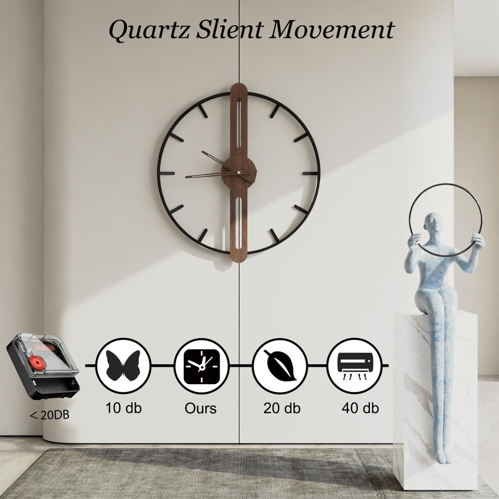 DAYDAYART is a brand that specializes in interior wall decoration, with the ultimate goal of enhancing the aesthetic appeal and taste of consumer homes. Whether you're seeking a wall clock that is utterly contemporary and sleek, or one that embodies artistic style and doubles as a centerpiece, DAYDAYART offers a perfect match for your space. Our collection showcases designs from renowned home interior creators, ensuring that every piece is a testament to sophisticated living and fine craftsmanship. Refined Modern Minimalism: This handcrafted wall clock boasts a natural walnut dial with nuture walnut clock hands, encased in a solid metal frame. Its blend of contemporary and vintage styles transforms it from a mere timepiece into an elegant work of art, enhancing your home decor Exceptional Craftsmanship and Quality Materials: Crafted from premium metal and wood, this sizeable wall clock features a surface with anti-corrosion treatment, ensuring durability and resistance to deformation. A single AA battery is required for operation (not included) Utterly Silent and Simple Installation: Our high-quality clock mechanism delivers precise timekeeping while maintaining a silent environment, free from ticking sounds. Refer to installation instructions, installation is effortless with the included hanging hook Elegant Home Accent: Measuring 20 inches (50 cm), this wall clock is perfectly sized to elevate the aesthetic appeal of your living space. It serves as a striking decorative element for your living room, bedroom, kitchen, office, study, and more, making it an ideal present for yourself or friends on special occasions Dedicated Customer Service: Please review the installation video and instructions upon product receipt. We provide a 12-month coverage period for the clock and welcome any questions or feedback during its usage. Our dedication is to ensure the utmost satisfaction and assistance