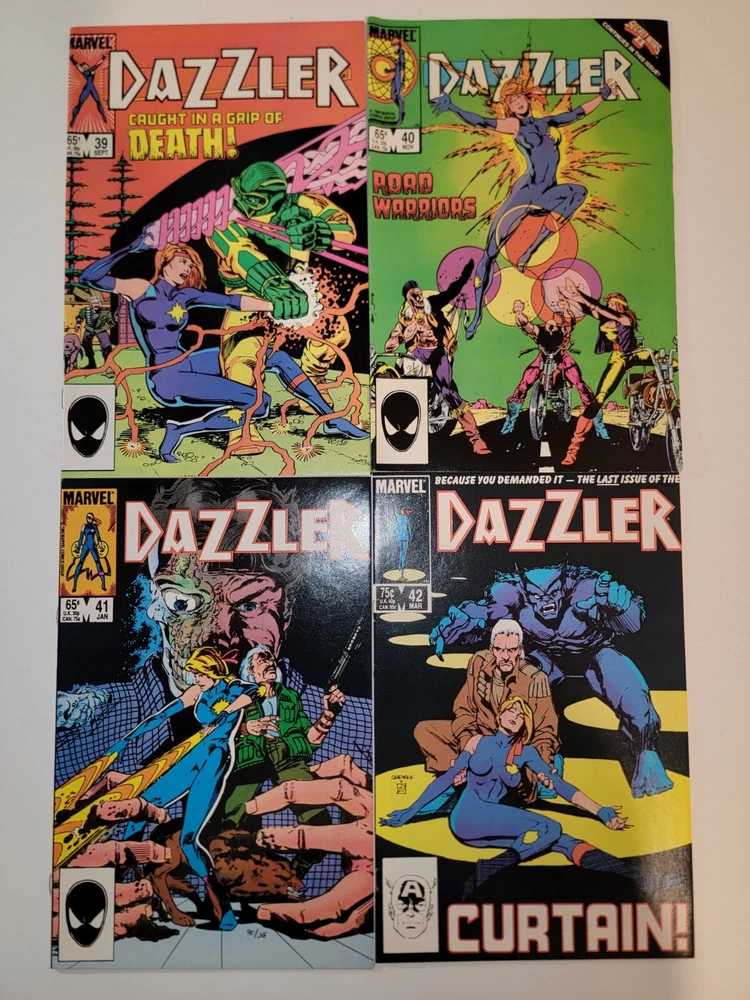 This is a complete set of Dazzler #1-42 comic book lot from 1981, grade range at Near Mint to Fine. The set features key issues and the artwork of John Romita Jr. and Tom DeFalco. The comic book lot is perfect for collectors who are into superheroes and US Comics, with a mix of vintage and modern style. The Dazzler #1-42 is an English language comic book set with a variety of features, including the character of Dazzler (Alison Blaire), cover art by Bob Larkin, and publication under Marvel Comics. It is intended for a general audience and is a great addition to any collection. - Beautiful lot, see pictures - Bagged and boarded - Shipped with Gemini packing to insure no damage during shipping - Usps ground Advantage Check out our 1000s of comics in our store We combine shipping
