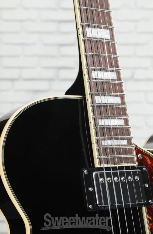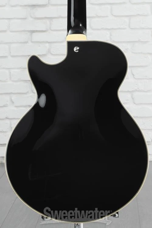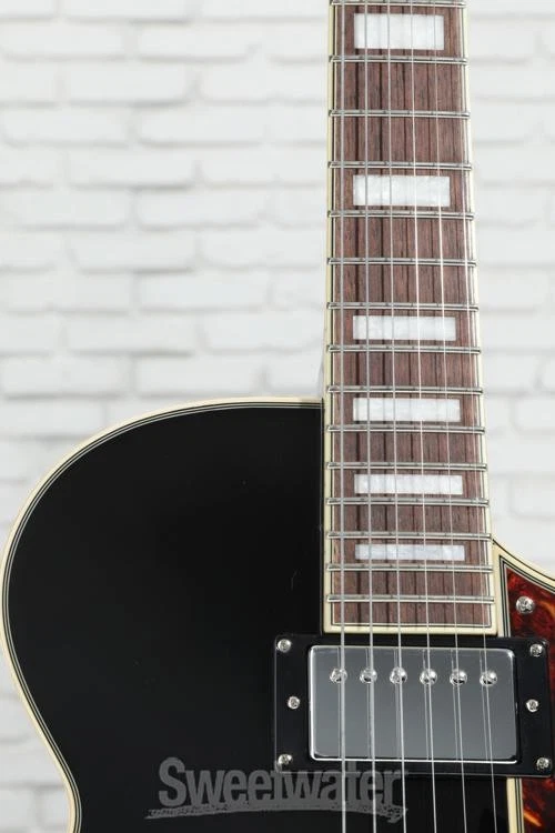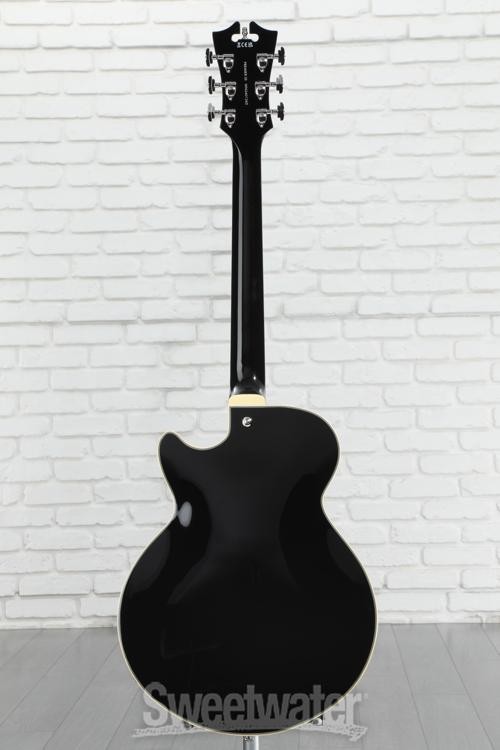 A Sophisticated Semi-hollow Invitation from D’Angelico The D’Angelico Premier SS semi-hollowbody electric guitar puts playability and value first while recognizing the importance of good looks. The Premier SS’s single-cutaway body shape is lightweight, comfortable, and carved from laminate maple. Maple’s bright warmth brings semi-hollow sounds and techniques to life with a smooth, swift attack and plenty of bite or sustain — it all depends on your dynamics and method of attack. Two custom D’Angelico humbucking pickups supply an extensive sonic range, stretching all the way from jazzy cleans to rock ’n’ roll grit. Per-pickup control knobs (carved from natural ebony) facilitate precise switching between two or three distinct tones with the flip of a switch. Sweetwater guitarists like the way this guitar’s “C”-shaped neck finds a happy medium that’s conducive to vintage and modern styles without strain. D’Angelico’s finishing touches adorn each section of the Premier SS in trappings that Sweetwater is an Authorized D'Angelico Dealer Genuine New Item Sweetwater's 2-year warranty and 55 point inspection D'Angelico Premier SS Semi-hollow Electric Guitar - Solid Black Semi-hollowbody Electric Guitar with Maple Body and Neck, Walnut Fingerboard, and 2 Humbucking Pickups - Solid Black A Sophisticated Semi-hollow Invitation from D’Angelico The D’Angelico Premier SS semi-hollowbody electric guitar puts playability and value first while recognizing the importance of good looks. The Premier SS’s single-cutaway body shape is lightweight, comfortable, and carved from laminate maple. Maple’s bright warmth brings semi-hollow sounds and techniques to life with a smooth, swift attack and plenty of bite or sustain — it all depends on your dynamics and method of attack. Two custom D’Angelico humbucking pickups supply an extensive sonic range, stretching all the way from jazzy cleans to rock ’n’ roll grit. Per-pickup control knobs (carved from natural ebony) facilitate precise switching between two or three distinct tones with the flip of a switch. Sweetwater guitarists like the way this guitar’s “C”-shaped neck finds a happy medium that’s conducive to vintage and modern styles without strain. D’Angelico’s finishing touches adorn each section of the Premier SS in trappings that exude confidence. Stairstep tuners, a vintage-inspired Scalini pickguard, block inlays, and an art-deco headstock are just a handful of the perks you can look forward to when you choose the Premier SS semi-hollowbody! Familiar semi-hollowbody construction The Premier SS combines vintage-inspired maple semi-hollowbody construction with a single-cut body shape. The single-cut shape offers the best of both worlds — improved upper-fret access on the treble side, while the bass side’s fuller figure promotes unimpeded sustain that supports melodic movement with low-string resonance. Inside, the Premier SS features a solid center block that keeps feedback at bay and makes it easy to push amp levels or use effects such as reverb, overdrive, and delay. Set-through maple neck construction heightens sustain and tonal quality, and this neck is capped with a walnut fingerboard. Walnut’s smoothness and natural hardwood feel leave guitarists feeling inspired, and players at Sweetwater find that a walnut fingerboard helps with accuracy and consistency, especially when tackling complex chords, such as sevenths or inversions. Custom in-house humbuckers The Premier SS comes loaded with a set of classic-sounding chrome-covered D’Angelico humbuckers. Both pickups use calibrated alnico magnets and vintage-inspired winding specs to provide workhorse tones. Jazz-tinged cleans are imbued with warm soul. Pushing levels to the limit can quickly drive your amp into overdrive, and the clean fidelity makes a potent platform for dirt pedals if you indulge in high-gain distortion and grit. A 3-way toggle allows for easy pickup switching, and each pickup features its own volume and tone knob for maximum tonal versatility. Moreover, control pots are capped with striking ebony knobs for an all-natural look with serious retro appeal. While it may resemble a classic jazz box, the D’Angelico Premier SS is a cross-genre, do-it-all instrument that will ace any live gig or studio session. The D’Angelico legacy After mastering his craft during an 18-year apprenticeship, luthier John D’Angelico opened his own shop in Manhattan’s Little Italy in 1932. Catering to New York’s many jazz musicians over the ensuing three decades, D’Angelico and a single apprentice became New York’s foremost stringed instrument builders, creating over one thousand treasured archtop guitars until John’s death in 1964. After his passing, the D’Angelico legacy lived on only through his rare, legendary instruments. After decades, the D’Angelico brand has resurfaced, bringing back the playability and attention to detail of the company’s New York roots. Today, Sweetwater is delighted to offer this fine line of distinguished instruments. D’Angelico uses state-of-the-art manufacturing processes and the finest available materials to create playable works of art for today’s guitarists. From a modest shop in Little Italy to the world stage, D’Angelico’s dedication to quality craftsmanship ensures that this brand won’t go dormant again. D’Angelico Premier SS Features: Laminate maple body yields a warm, resonant tone with a vintage semi-hollow sound Solid center block effectively keeps feedback at bay D’Angelico humbuckers support jazz-tinged cleans, high-gain distortion, and everything in between Per-pickup volume and tone knob for maximum tonal versatility Comfortable “C”-shaped maple neck Fast-and-smooth bound walnut fingerboard, 14-in. radius, MOP block inlays Tune-o-matic bridge and stopbar tailpiece lock on and transmit the nuances of every note Stairstep tuners ensure solid tuning stability and classy aes
