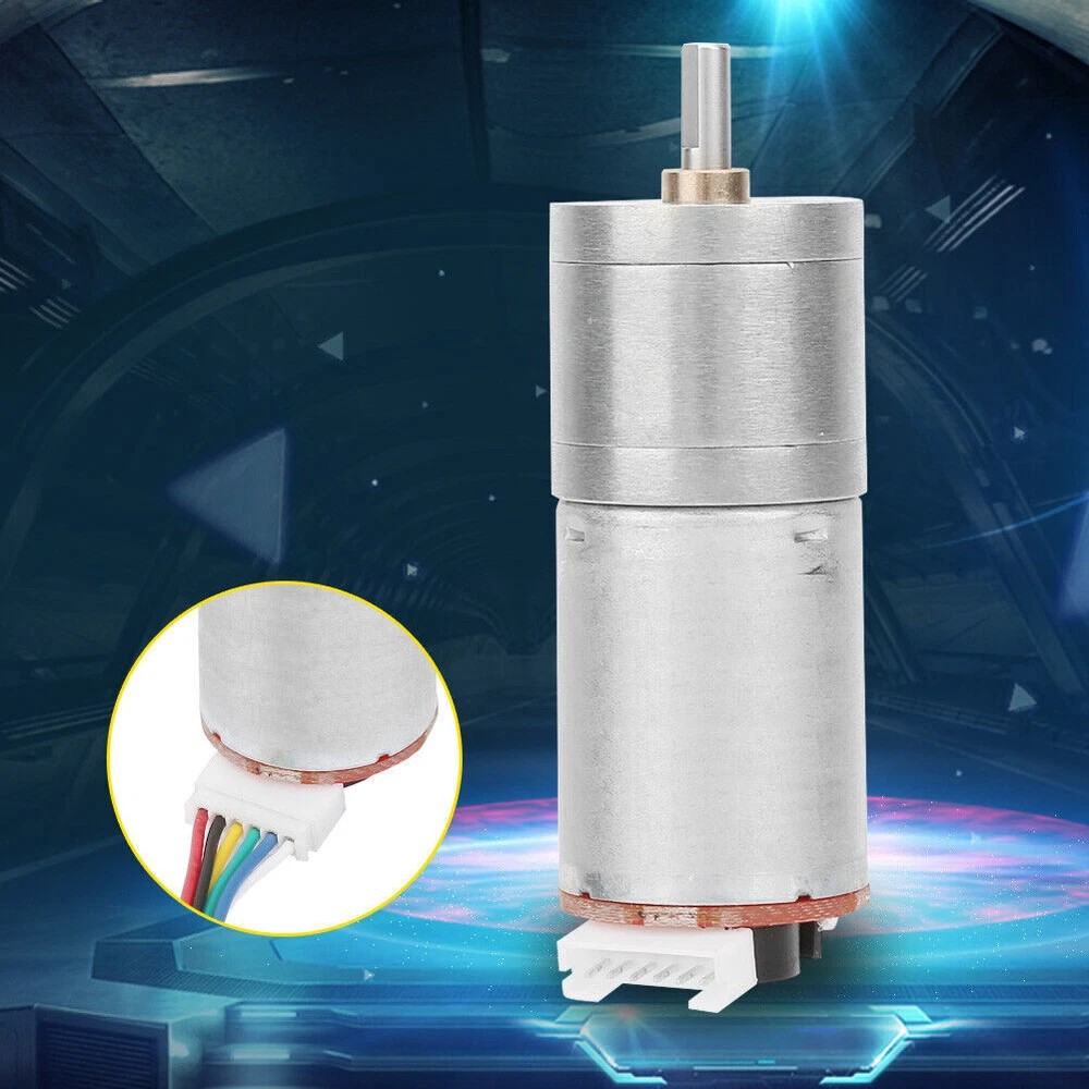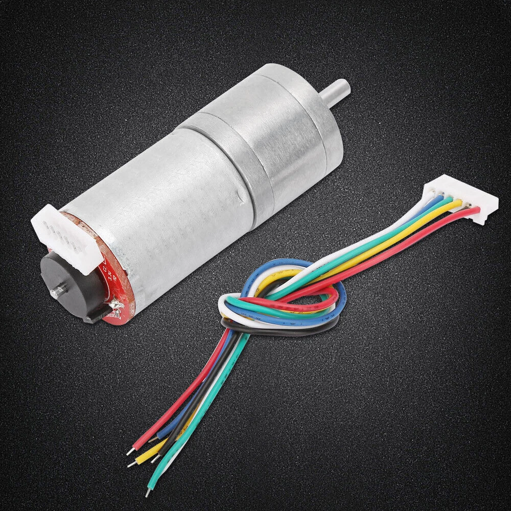 Feature: 1. 1. Pure copper coil: The motor is made of high-precision rotor and high-quality materials, with high conductivity, high wear resistance and long life. At the same time, it adopts pure copper group, featured with small resistance, low heat generation, low 2. 2. High quality carbon brush: Under the premise that other materials meet the requirements, it has good commutation performance, long service life, good electrical and thermal conductivity and good lubrication performance. The wear resistance degree of t 3. 3. High strength magnetic tile: Long life, strong power, greater . Fully enclosed structure to prevent dust from entering the motor interior, simple structure, convenient maintenance. Small size, effective weight reduction, space saving, u 4. 4. Full metal gear: The gearbox are all made of high-quality metal gears, which have good impact resistance and durability. thus extending the lifespan of the gearbox. 5. 5. Wide Application: This motor is ideal for intelligent toy car, robot, printer, balance car, smart home appliance, camera rocker arm, and so on. Specification: Features: 1. Pure copper coil: The motor is made of high-precision rotor and high-quality materials, with high conductivity, high wear resistance and long life. At the same time, it adopts pure copper group, featured with small resistance, low heat generation, low loss, stable operation and sufficient power. 2. High quality carbon brush: Under the premise that other materials meet the requirements, it has good commutation performance, long service life, good electrical and thermal conductivity and good lubrication performance. The wear resistance degree of the carbon brush directly determines service life of the motor. 3. High strength magnetic tile: Long life, strong power, greater . Fully enclosed structure to prevent dust from entering the motor interior, simple structure, convenient maintenance. Small size, effective weight reduction, space saving, use. 4. Full metal gear: The gearbox are all made of high-quality metal gears, which have good impact resistance and durability. thus extending the lifespan of the gearbox. 5. Wide Application: This motor is ideal for intelligent toy car, robot, printer, balance car, smart home appliance, camera rocker arm, and so on. Specification: Rated speed (RPM): 1000, 500, 200, 130, 100, 60, 50, 40, 30, 20, 15, 10 ( Optional ) : Outer diameter: 25mm/0.98in Shaft length: 12mm/0.47in Shaft diameter: 4mm/0.16in Reduction Ratio No Load Rated Stall L Size Raed Voltage Speed Current Speed Current Current V ±10%RPM A ±10%RPM A KG.CM KG.CM A MM 4.4 12 1360 0.07 1000 0.3 0.1 0.4 1.8 18 9.6 12 620 0.07 500 0.3 0.2 0.9 1.8 17.5 21.3 12 280 0.07 200 0.3 0.4 2 1.8 19 35.5 12 170 0.07 130 0.3 0.69 3.3 1.8 21 46.8 12 130 0.07 100 0.3 0.9 4.4 1.8 21 78 12 77 0.07 60 0.3 1.5 5.5 1.8 23 103 12 60 0.07 50 0.3 2 7.3 1.8 23 130 12 46 0.07 40 0.3 2.5 9.2 1.8 25 171 12 35 0.07 30 0.3 3.3 Forbid stall or instantanous load reversal 25 226 12 26 0.07 20 0.3 4.4 25 377 12 16 0.07 15 0.3 7.3 27 500 12 12 0.07 10 0.3 9.7 27 Package l ist: 1 x Encoder Gear Motor