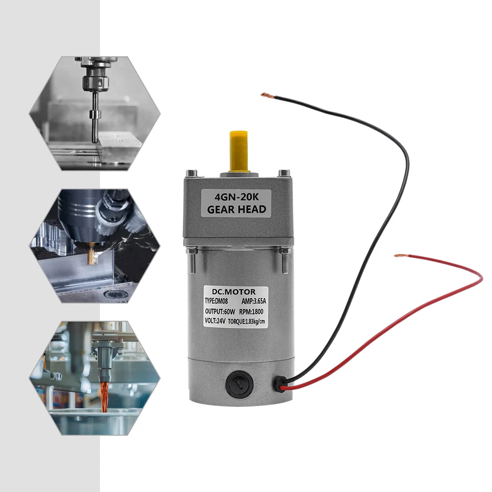 Specifications Color: Silver Model: DM08 Assembly Required: No Material: Aluminum Alloy, 40cr Alloy Steel Motor Type: Brush Copper Wire Motor Reduction Ratio: 1:20(20K) Process: Tempering Treatment, Fine Finish, Nitrogen Treatment Noise(About 1m/3.28ft Away): 50db Protection Level: IP65 Motor Speed: 1800rpm Output: 60W AMP: 3.65A Volt: 24V Torque: 1.83kg/cm Shaft Bore Diameter: 10mm/0.39inch Keyway: 4mm/0.16inch Shaft Bore Length: 30mm/1.18inch Product Size(Gearbox and Shaft Included): 80*198mm/3.15*7.8inch Packaging Size: 23.8*10*10.8cm/9.37*3.94*4.25inch Gross Weight: 2.6kg/5.73lbs Net Weight: 2.3kg/5.07lbs Package Included 1*DC Gear Motor DC 24V Gear Motor Adjustable Motor 1800rpm, Large Torque Gear Motor Waterproof Description The 20k DC gear motor is a high-performance motor made of high-quality aluminum alloy and 40cr alloy steel, which is solid and durable. It uses a high-quality copper wire brushed motor with high strength, high efficiency, low noise, and long service life, making it widely used in various mechanical equipment and industrial automation systems. Key Features Build to Last: With high-quality aluminum alloy and 40cr alloy steel materials, this motor features excellent corrosion and oxidation resistance as well as outstanding mechanical properties, hardness, toughness, and wear resistance . Low Noise: It works at a low noise of about 50dB at a distance of 3.28ft, equivalent to a relatively quiet office environment, providing you with a comfortable working ambiance. Excellent Workmanship: With processes including tempering treatment, fine finish, and nitrogen treatment, this motor features high accuracy, excellent working performance, and efficient running. High Efficiency: The 60W copper wire motor with strong reliability, 1800rpm rotational speed, 1.83kg/cm torque, 1:20 reduction ratio, and reversing function can effectively improve work efficiency. Thoughtful Design: It features an IP65 protection level, which is dustproof and waterproof , making our product more durable. It also adopts full ball bearings with high torque and low vibration, ensuring fast starting speed and stable performance of the motor. Ready to Use: The motor is assembly-free , so you just need to connect the wire to the right place on your machine, or you can connect it with a speed controller(not included) for more accurate speed control. Easy to Carry & Store: The compact size(3.15*7.8 inches) and 5.07 lbs weight allow you to easily carry this product to the required working site and store it with less space. Customer Service: We aim to provide quality products and services. If you have any problems, please feel free to contact us. We will reply and solve the problem for you as soon as possible. Details External Carbon Brush: It makes the changing of the carbon brush easier and gives the product a longer service life. Shaft Sleeve: The yellow shaft sleeve can effectively protect the shaft and reduce friction and wear. Two Lead Wires: Two nickel-plated lead wires have better conductivity, ensuring stable performance and providing you with a better user experience. Application It can be used in packaging, printing, food, textile, engineering machinery, and other fields, sports building materials, escalators, automated welding, transportation equipment, weaving machinery, packaging machinery, CNC equipment, machinery and equipment, grinding machines, milling machines, printing machinery, production workshops, and assembly lines. Specifications Color: Silver Model: DM08 Assembly Required: No Material: Aluminum Alloy, 40cr Alloy Steel Motor Type: Brush Copper Wire Motor Reduction Ratio: 1:20(20K) Process: Tempering Treatment, Fine Finish, Nitrogen Treatment Noise(About 1m/3.28ft Away): 50db Protection Level: IP65 Motor Speed: 1800rpm Output: 60W AMP: 3.65A Volt: 24V Torque: 1.83kg/cm Shaft Bore Diameter: 10mm/0.39inch Keyway: 4mm/0.16inch Shaft Bore Length: 30mm/1.18inch Product Size(Gearbox and Shaft Included): 80*198mm/3.15*7.8inch Packaging Size: 23.8*10*10.8cm/9.37*3.94*4.25inch Gross Weight: 2.6kg/5.73lbs Net Weight: 2.3kg/5.07lbs Package Included 1*DC Gear Motor Notes The gearbox has different reduction ratios. Please check whether it is the appropriate model that meets the required output speed before purchasing. The bracket and speed control unit are not included in this package, so you should purchase them yourself if you need them. If the motor load is small and does not run for a long time, the controller can be adjusted to 50% of full speed. When the motor is loaded and continuously operating for a long time, the controller should not be lower than 70% of full speed. Please do not knock the product to avoid unnecessary damage. Please allow the slight color difference caused by the shooting light and 1-3cm error due to manual measurement, and make sure you do not mind before you order. Payment Delivery details Terms of sales About us Contact us Payment We accept ebay payment 。 Fees such as import duties, taxes are not included in the item price or shipping costs. These charges are the buyer's responsibility. Delivery details Shipping: 2-9 working days to: USA Terms of sales We maintain high standards of excellence and strive for hundred percent customer satisfaction. Feedback is very important to us. We hope that you contact us immediately before you give neutral or negative feedback, so that we can address your concerns. It is impossible to address issues if we do not know about them! About us Your satis faction is our ultimate goal. We work hard to earn your trust and future business. Our certified technicians have tested each item before shipping. The unit comes with 1 year limited warranty on all manufacturing defects. a) If you receive a defective item, you may return it or ask for a discount. Please contact us within 14 days after you receive the package. b) What you returned must be intact and in its original packaging as re? u. Customer is responsible for shipping costs of the