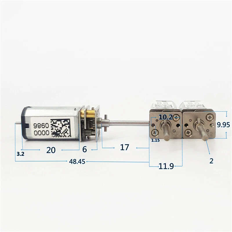 Description Welcome to our store: beestudio 2016 Tips: If you need Large quantity, please contact us, we can wholesales. Specification : 1.Suitable voltage: DC 1.5V-4.5V 2.Motor size: 20*10*11mm 3.Gearbox size: 11.9*9.95*6mm 4.Output shaft diameter: 2.0mm 5.Output shaft length: 17mm 6.Test data: Voltage:3.0V Speed:1200RPM No-load current:470mA Voltage:4.5V Speed:1850RPM No-load current:500mA 7.Note: This motor is usually powered by high-power lithium batteries. If it is powered by a regulated switching power supply, the power supply should have at least 5A current. If the power supply current is too small, the motor will be stuck. Package Include: Gear Motor x 1pcs Payment We only accept payment via Paypal. The buyer is responsible for any applicable import duties and local taxes. Usually there's no any charges for small parcel. But please verify with your customs before making your purchase. Delivery details The items will be shipped within 1~2 working days after your payment is received and cleared.(excluding Saturday, Sunday & Holiday) All items will be shipped to your Paypal address, so please make sure to provide us with the correct, precise, detailed shipping address. The Delivered time to USA buyer is about 7~20 days, other country about 15~35 days delivered. Notes: pls contact us if you need need trackable or express shipping service. Terms of sales All the items will be tested before shipping. Buy them with the confidence! We maintain the excellent service standards and strive for 100% customer satisfaction and Positive feedback. If you have any problem, please do feel free to contact us before leave Neutral or Negative feedback, so that we can satisfactorily address your concerns. Return We afford all cost if it's our fault. Exchange or refund. Contact us We strive to provide you with the best service, reply your question within 24 hours. Business time: 9:30~21:30 (GMT+8) exclude the weekend and holidays. Contact us