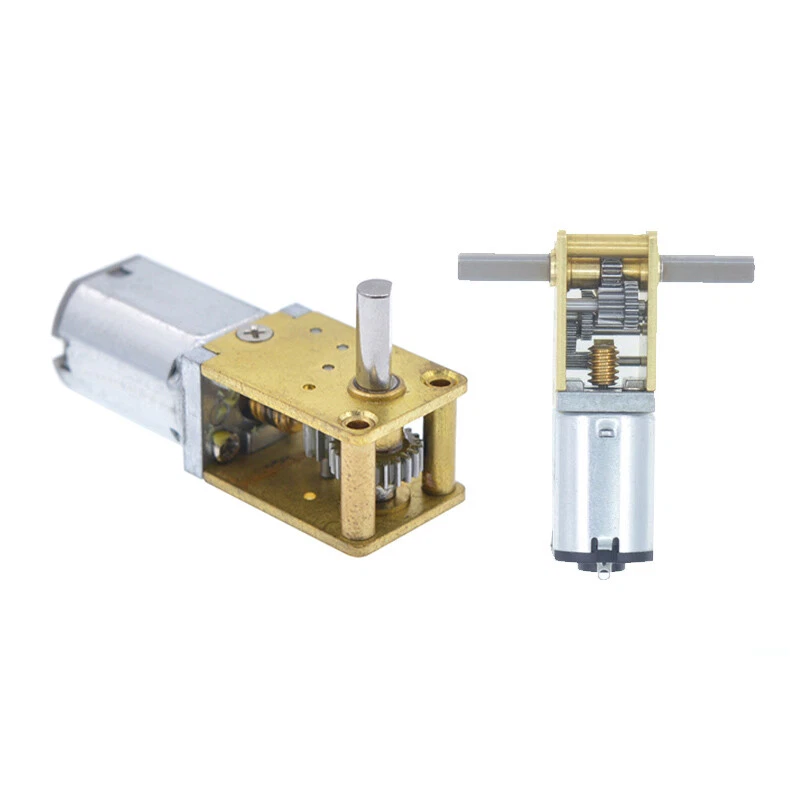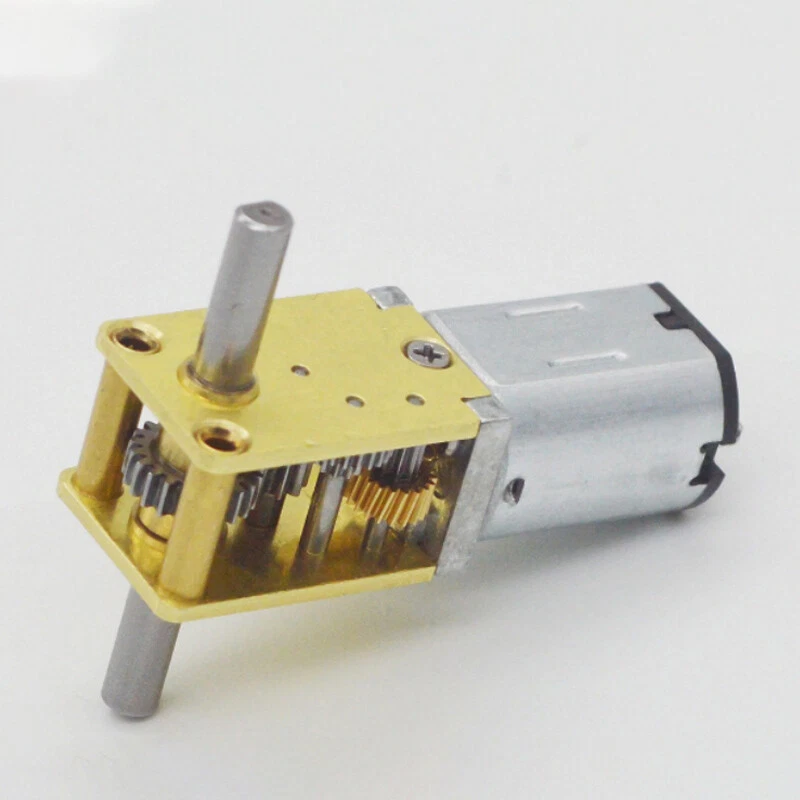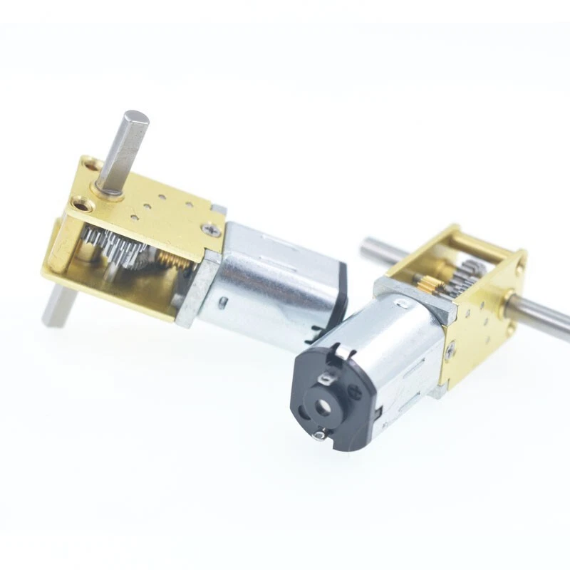DC 3V 6V 12V High Torque Mini N20 Worm Geared Reduction Motor Full Metal Gearbox Voltage Reduction Ration No Load RPM No Load Current Load Current Load RPM Start Voltage Blocking Current Blocking Torque/gf.cm Rated Torque/gf.cm Power 12V 118:1 136RPM 30mA 85mA 119RPM 0.5V 700mA 472 142 1.02W 12V 236:1 68RPM 30mA 85mA 59RPM 0.5V 700mA 944 283 1.02W 12V 302:1 53RPM 30mA 85mA 46RPM 0.5V 700mA 1208 362 1.02W 12V 603:1 27RPM 30mA 85mA 23RPM 0.5V 700mA 1929.6 579 1.02W 12V 42:1 381RPM 30mA 85mA 333RPM 0.5V 700mA 235.2 71 1.02W 12V 1030:1 16RPM 30mA 85mA 14RPM 0.5V 700mA 3296 989 1.02W 6V 118:1 68RPM 20mA 60mA 51RPM 0.5V 350mA 206.5 62 0.36W 6V 236:1 34RPM 20mA 60mA 25RPM 0.5V 350mA 413 124 0.36W 6V 302:1 26RPM 20mA 60mA 20RPM 0.5V 350mA 528.5 159 0.36W 6V 603:1 13RPM 20mA 60mA 10RPM 0.5V 350mA 1055.25 317 0.36W 6V 42:1 190RPM 20mA 60mA 143RPM 0.5V 350mA 73.5 22 0.36W 6V 1030:1 8RPM 20mA 60mA 6RPM 0.5V 350mA 1802 541 0.36W 3V 118:1 34RPM 10mA 40mA 21RPM 0.5V 150mA 88.5 27 0.12W 3V 236:1 17RPM 10mA 40mA 11RPM 0.5V 150mA 177 53 0.12W 3V 302:1 13RPM 10mA 40mA 8RPM 0.5V 150mA 226.5 68 0.12W 3V 603:1 7RPM 10mA 40mA 4RPM 0.5V 150mA 452.25 136 0.12W 3V 42:1 95RPM 10mA 40mA 60RPM 0.5V 150mA 31.5 9 0.12W 3V 1030:1 4RPM 10mA 40mA 2RPM 0.5V 150mA 722.5 232 0.12W *IMPORTANT INFORMATION*. N20 Turbo Worm DC Gear Motor Weight : 13g Voltage:3V 6V 9V 12V Speed Error : 10% All Metal Gear Low speed, Can be forward and reverse Mute self-locking Precautions for motor use: Before use, confirm that the motor voltage is correct. If it is a DC motor, confirm whether the power supply current is sufficient. It cannot be used with overload. The cause of overload is mainly divided into two parts: torque and shaft force. The load torque cannot exceed the rated torque of the motor. The shaft force cannot exceed the axial and radial allowable force of the shaft, and the load is added. The measured current of the rear motor cannot exceed the rated current. Generally, the motor must be equipped with a fuse to avoid overloading the motor. When installing the motor, pay attention to whether the screws are too long, and do not use too long screws to the parts inside the motor