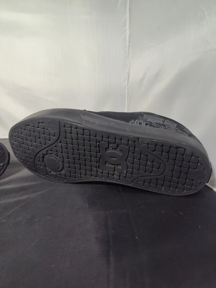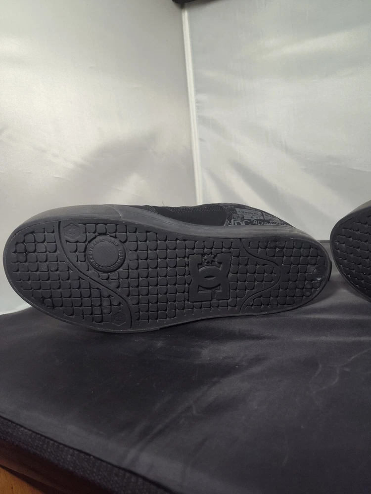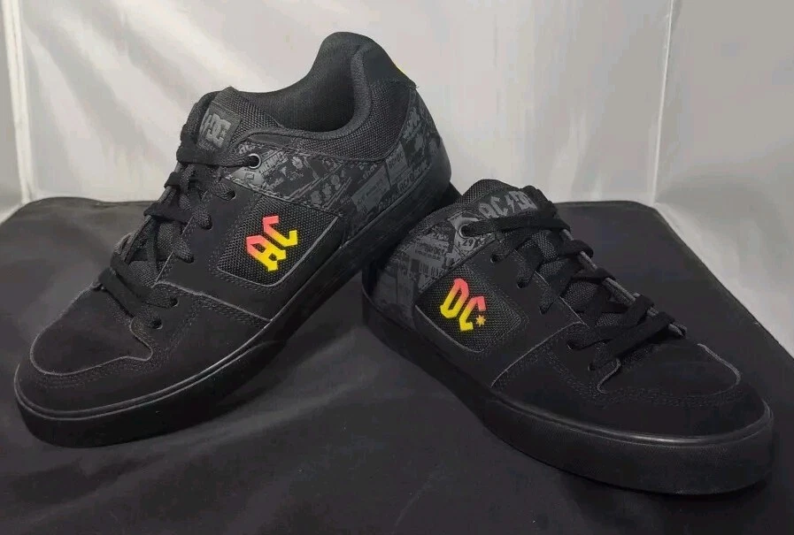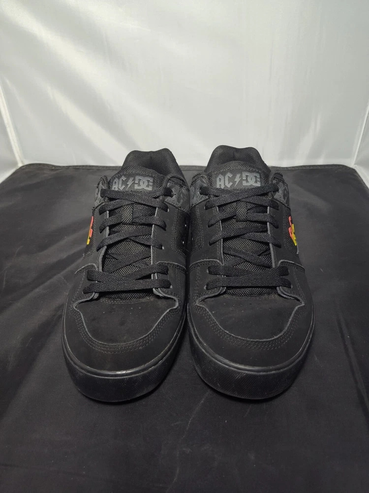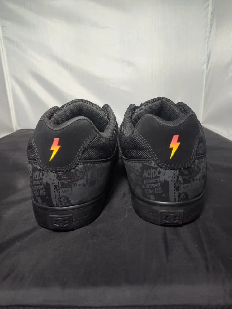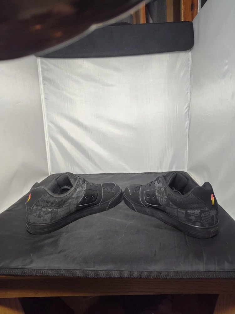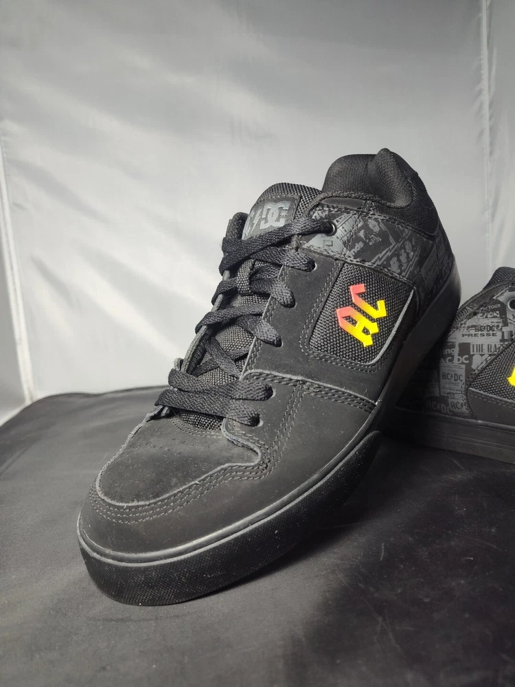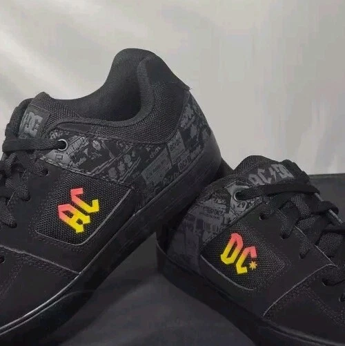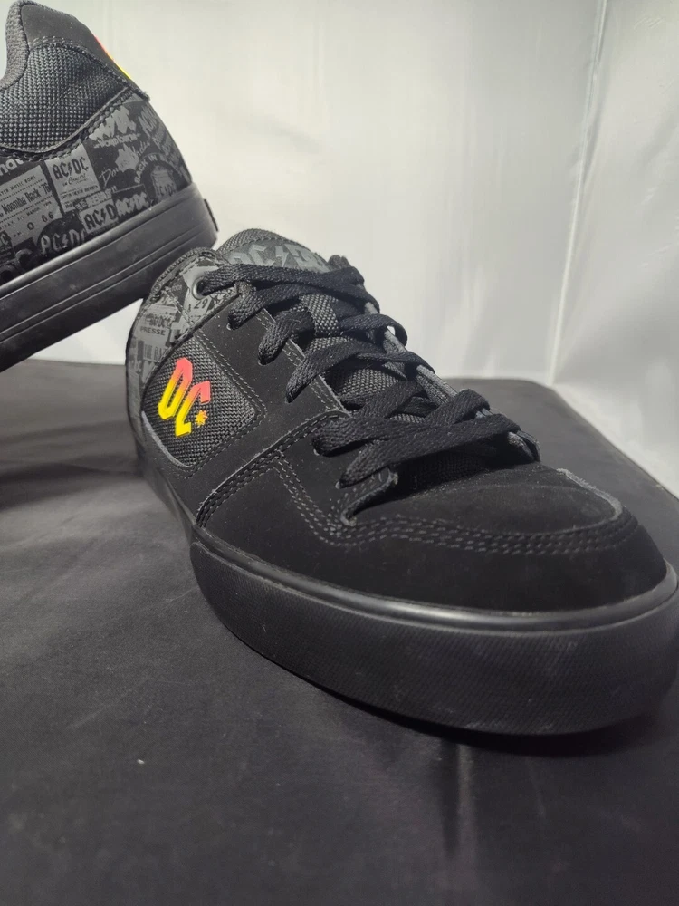 These rare DC AC/DC Highway to Hell skate shoes are a must-have for any rock 'n' roll fan. The black nubuck upper material features a solid pattern with album covers and the faux suede outsole is waterproof, making them perfect for any casual occasion. The synthetic lining and insole materials ensure a comfortable fit, while the US men's size 9.5 and UK size 8.5 make them a versatile addition to any shoe collection. The DC brand is known for their high-quality footwear and these skate shoes are no exception. The Highway to Hell model is a great tribute to the legendary AC/DC band and their music. These shoes are a great find for any collector or music lover.