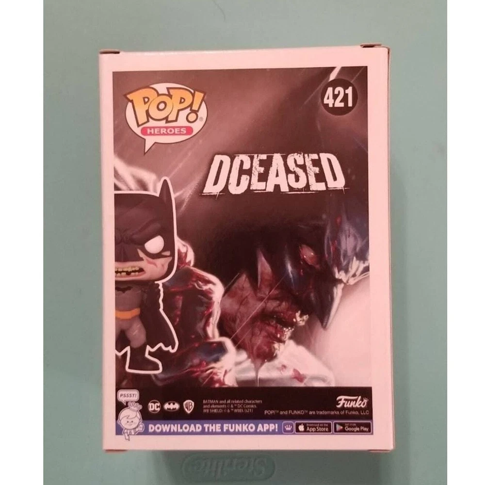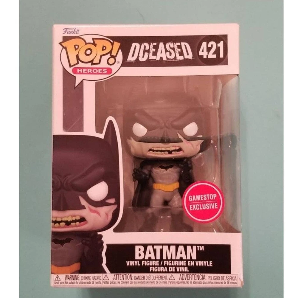 Batman DCeased Exclusive Funko Pop. Has light box damage as shown in last photos. No damage to funko Pop. Will ship fast and with care!