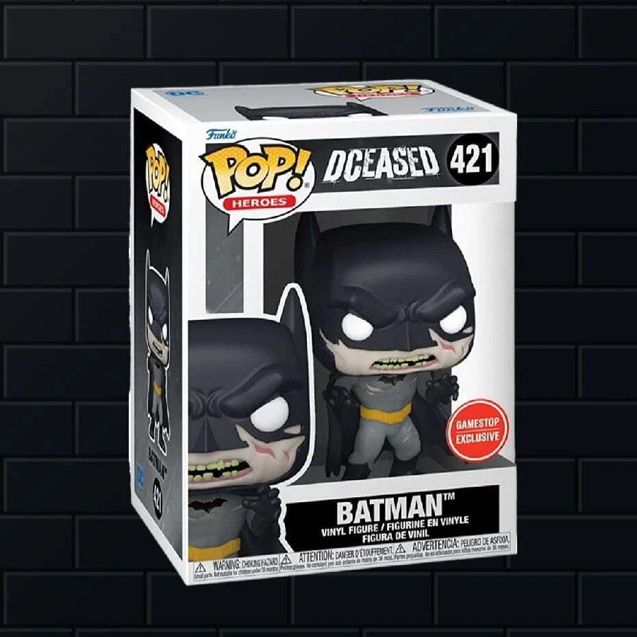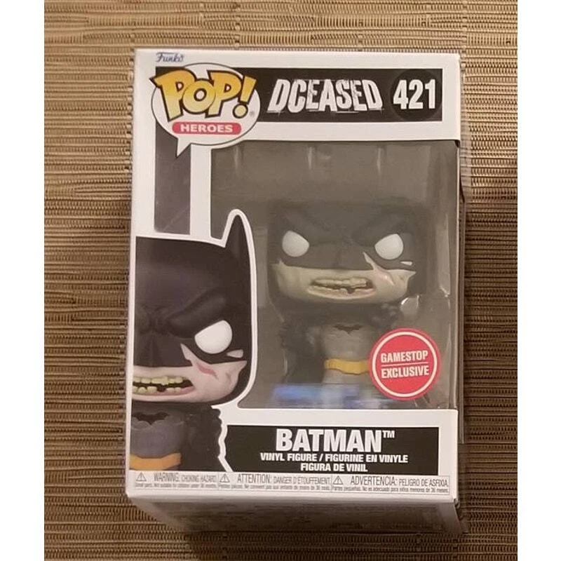 Batman DCeased Exclusive Funko Pop. Has some box damage as shown in last photo, but no damage to funko Pop. Will ship fast and with care!