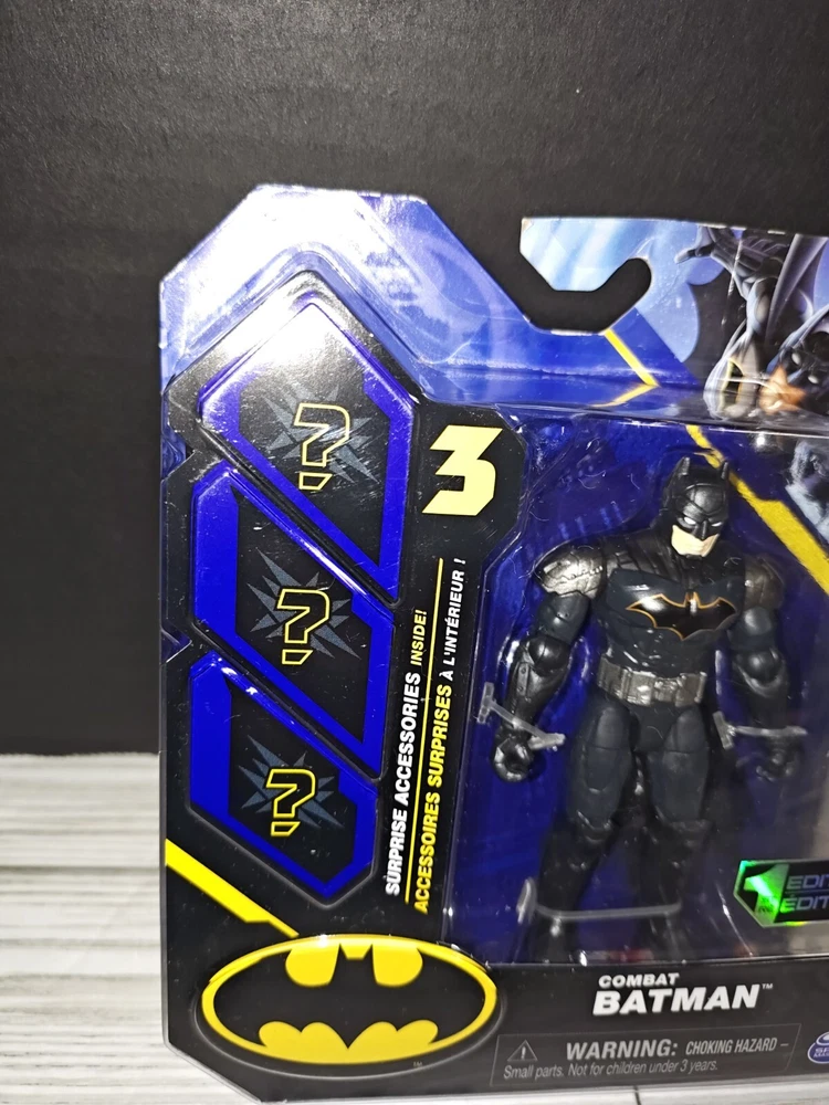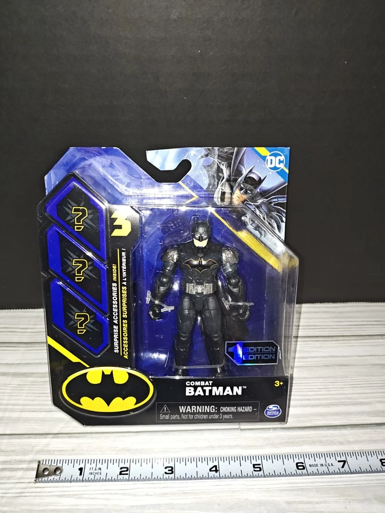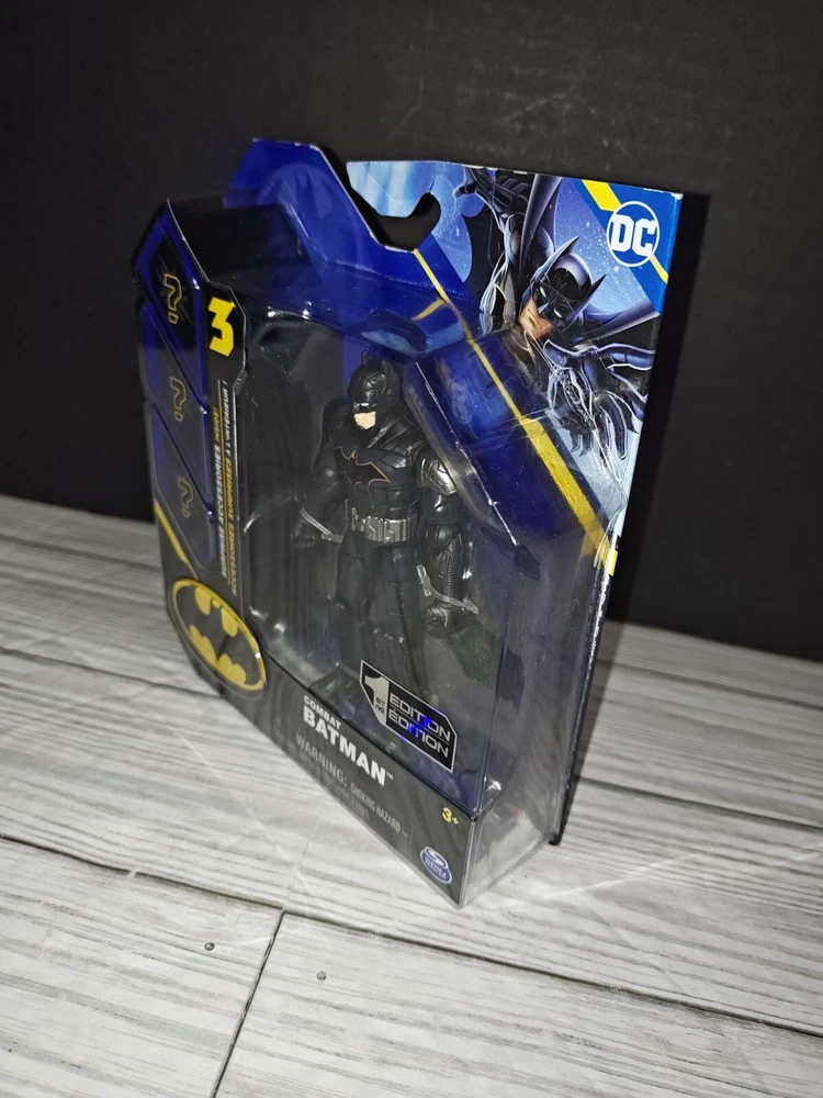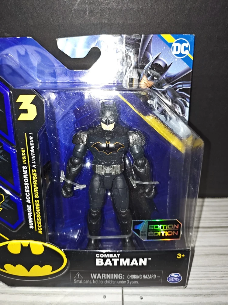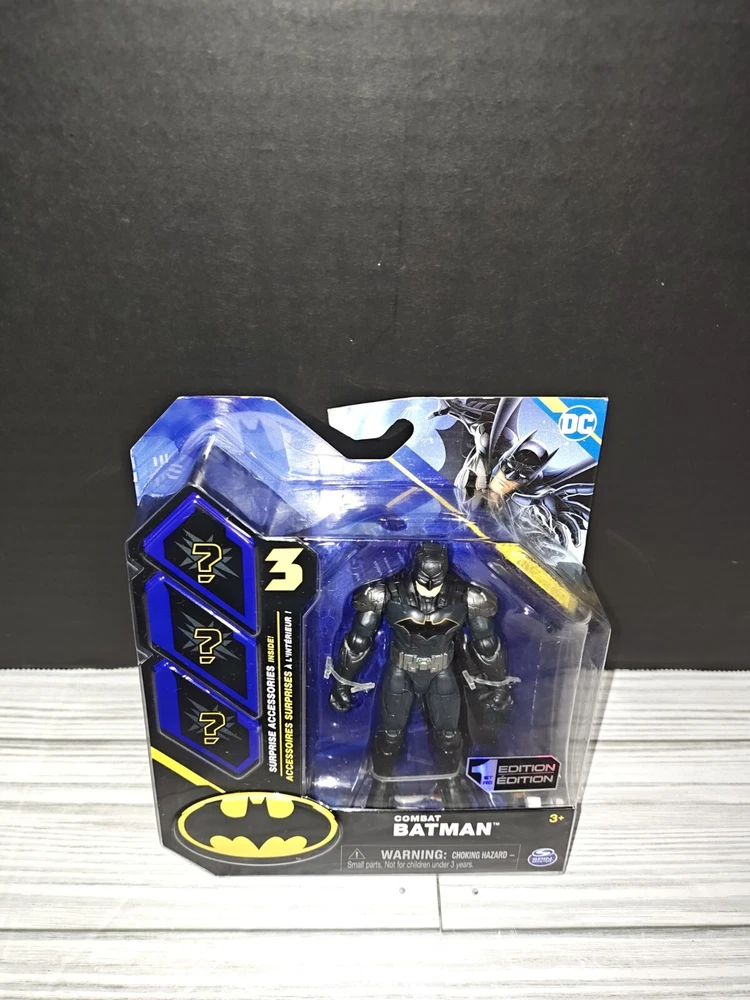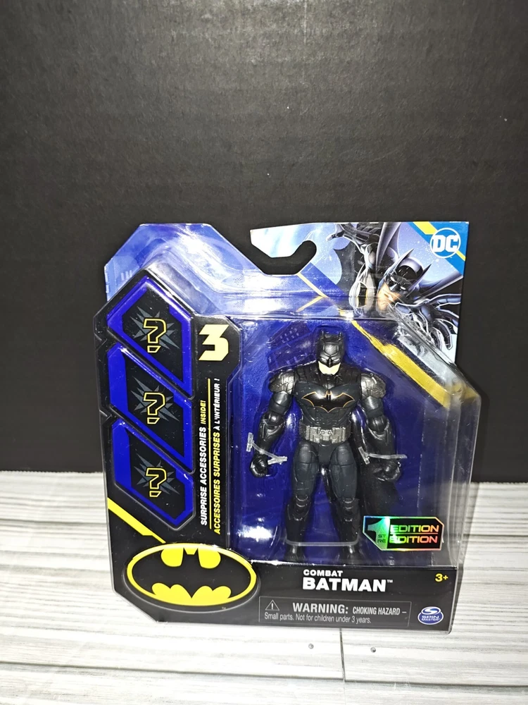 DC Comics 4” 1st Edition Combat Batman Action Figure w/Accessories By Spinmaster. Packaging has some wear from age and storage. See pictures. Sold as is.