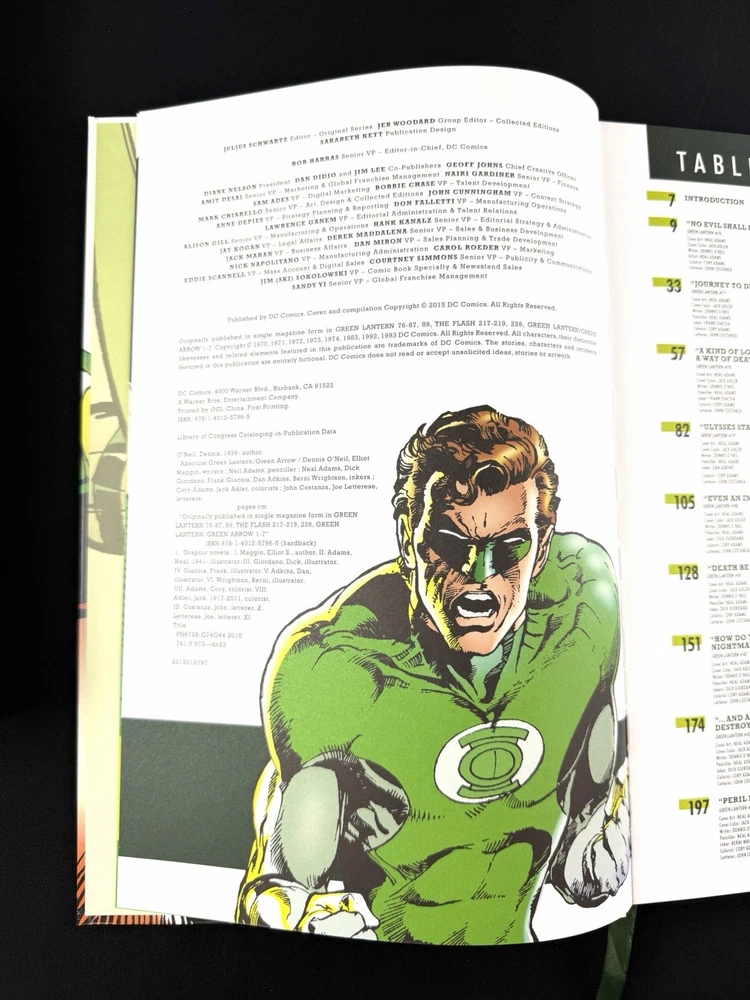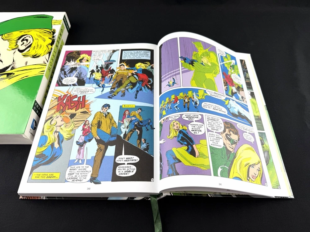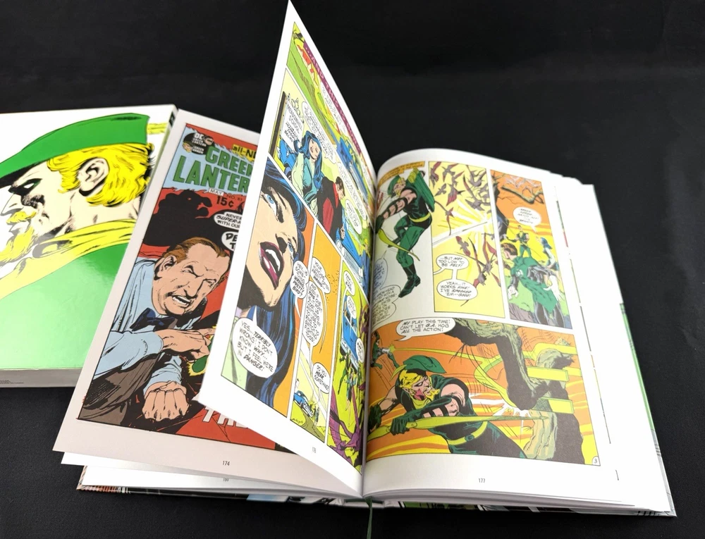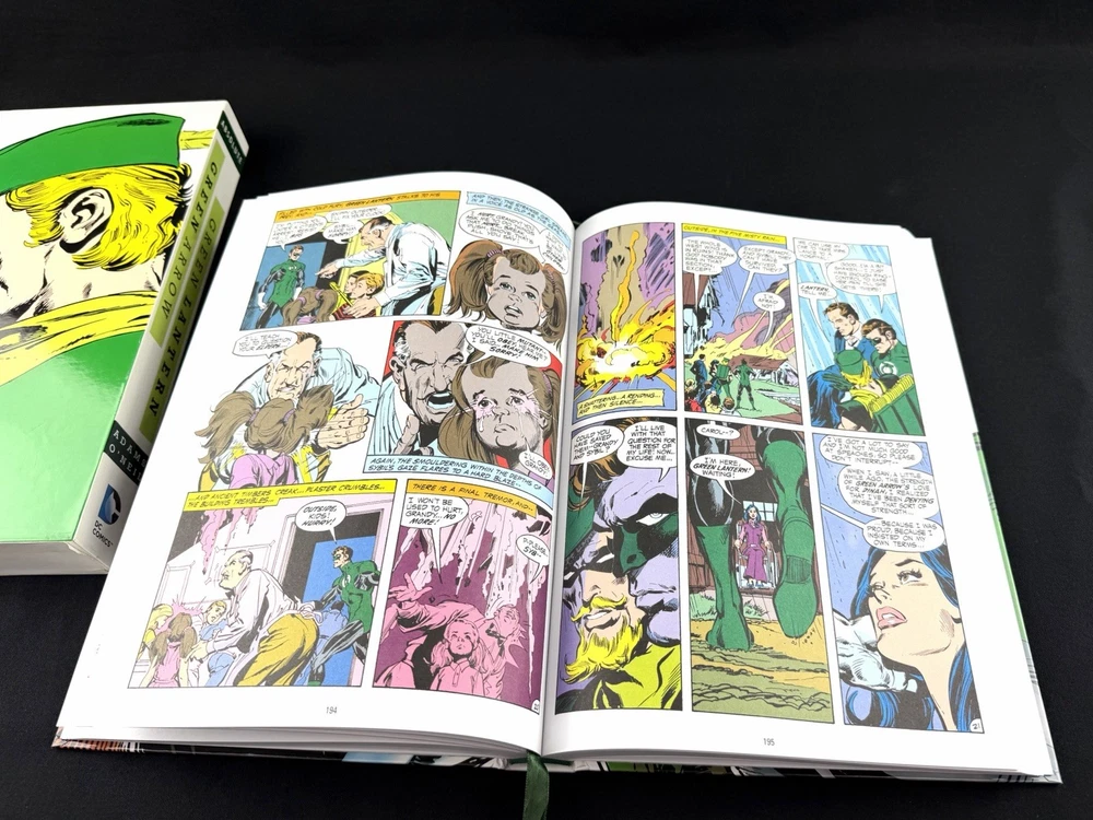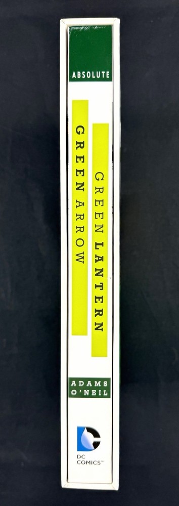 Up for sale is a DC Comics - Absolute - Green Lantern/Green Arrow - Hardcover Comic by Adams and O’Neil. This was a storage unit find. In really good condition but does have a few small nicks on the box. There are some light indentations around the outer box. Colors are very vibrant. Inner book is very nice with one small nick on the spine (see close up photo). There are creases on the cover spine suggesting the book was opened at some point. Pages are still crisp and suggest not much use. The page holder ribbon is still in the middle of the book, again suggesting that the book wasn’t used very much. Great graphics and would look good on anyone’s shelf.