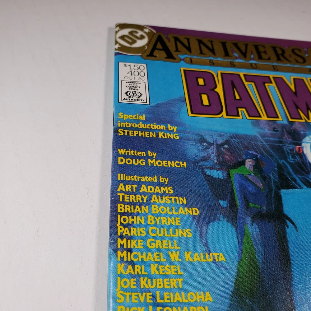 This DC Comics Batman #400 Newsstand NM Key Issue Bill Sienkiewicz Classic Cover is a must-have for any comic book collector or fan of superheroes. Special introduction by Stephen King. The single issue format, published in 1986 by DC Comics, features the iconic artwork of Bill Sienkiewicz and the thrilling writing of Doug Moench. The comic book is a part of the Batman series title and falls under the Copper Age (1984-1991) era. The comic book is a key issue and does not come signed. It is a single unit and is categorized under Comics & Graphic Novels, Comic Books & Memorabilia, and Collectibles. The tradition is US Comics and the genre is Superheroes. This comic book is a classic and is sure to be a valuable addition to any collection.