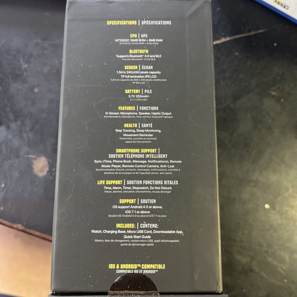 gtin13: 0190371817656 Case Material: Plastic UPC: 0190371817656 Compatible Operating System: Android, iOS - Apple GTIN: 0190371817656 Case Color: Black Operating System: Apple Watch OS Weight: 0.79 lbs Case Size: 40 mm Band Material: Silicone Storage Capacity: 4 GB Network: Base, Unlocked Brand: DC Comics Band Color: Black Features: Heart Rate Monitor, Music Player, Blood Pressure Monitor, Ambient Light Sensor, Camera, Wi-Fi Capable, Fitness Tracker, Touchscreen, Wireless Charging, 4G Data Capable, Sleep Monitor, Bluetooth Enabled, Push to Talk (PTT), Speakerphone, E-compass, Always-on Display, Caller ID, GPS