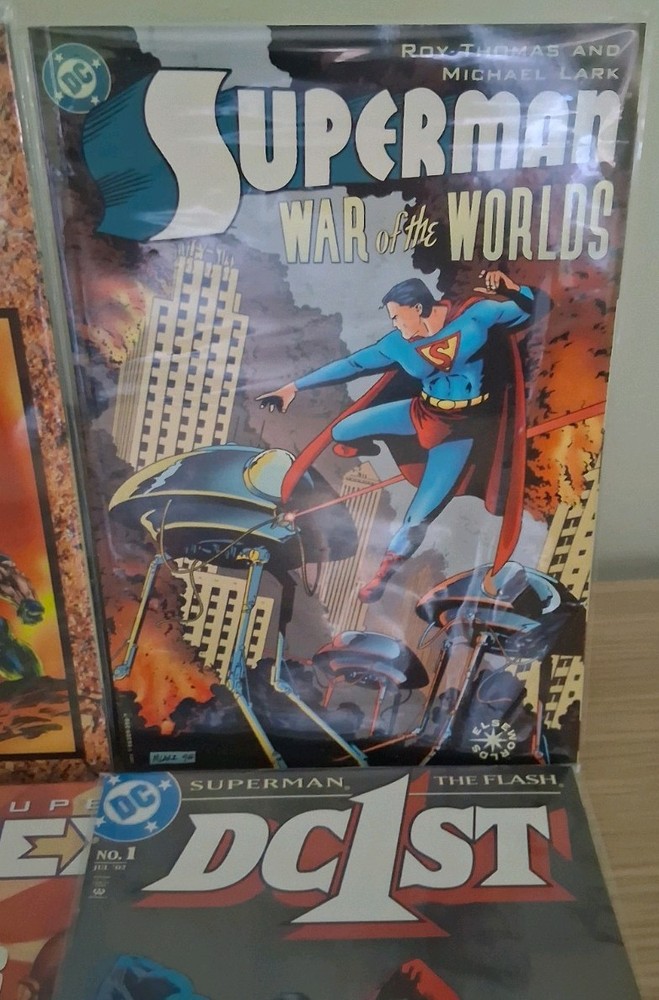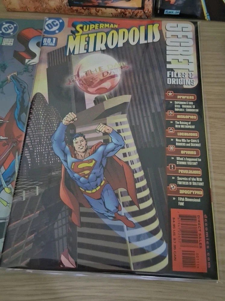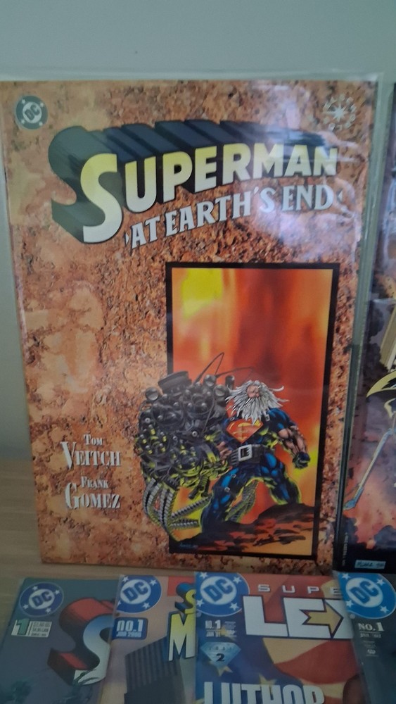 This a six issue bundle. Superman - Thd Man Of Steel Gallery #1 Superman - Metropolis #1 Secret Files Superman - Lex 2000 Superman & The Flash DC 1st Elseworlds - Superman At Earths End Elseworlds - Superman War Of The Worlds DC Comics trade paperback titled "Superman: At Earth's End" from the Elseworlds series, featuring art by Carlos Gomez and writing by Rick Veitch. Set in the DC Universe during the Modern Age, this graphic novel tells a unique story of Superman (Clark Kent) as he faces an epic adventure within the Justice League of America. The colourful artwork and action-packed storyline make it a must-have for general audiences who enjoy superhero comics.