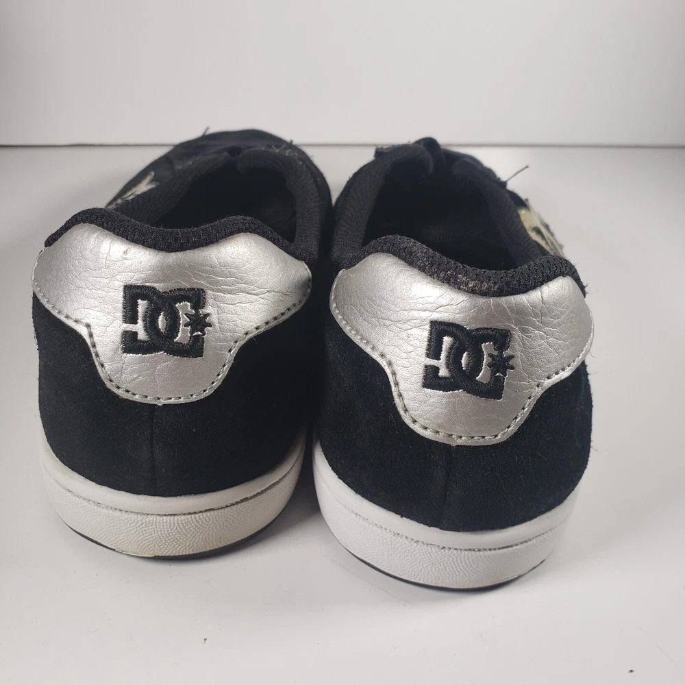 DC Court Slim TX Slip-On Black Suede Skate Sneakers Wns Size 7.5 Sparkly Gold DC on the side. Silver on the back. EUC, Super Clean and no damage.