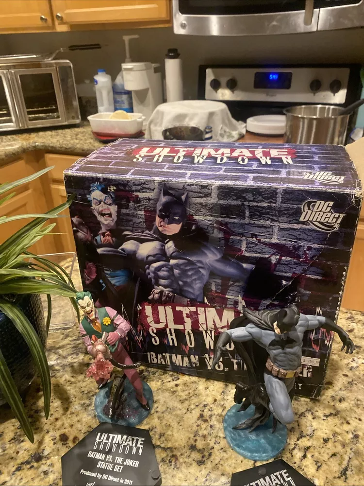 Immerse yourself in the world of Gotham with the DC Direct Ultimate Showdown Batman vs Joker Statue. This collectible captures the iconic clash between the Dynamic Duo and the Clown Prince of Crime in exquisite detail. The statue is a must-have for fans of the franchise, bringing a piece of the Batman saga into your home. Expertly crafted, this piece features the Joker in his menacing attire from the 'Joker' movie, set to pose perfectly alongside Batman. Whether you're a seasoned collector or new to the realm of comic book memorabilia, this non-modified, high-quality statue from DC Direct is a standout addition to any collection.
