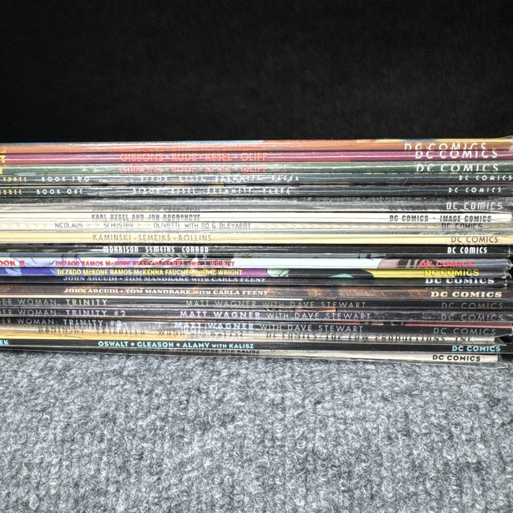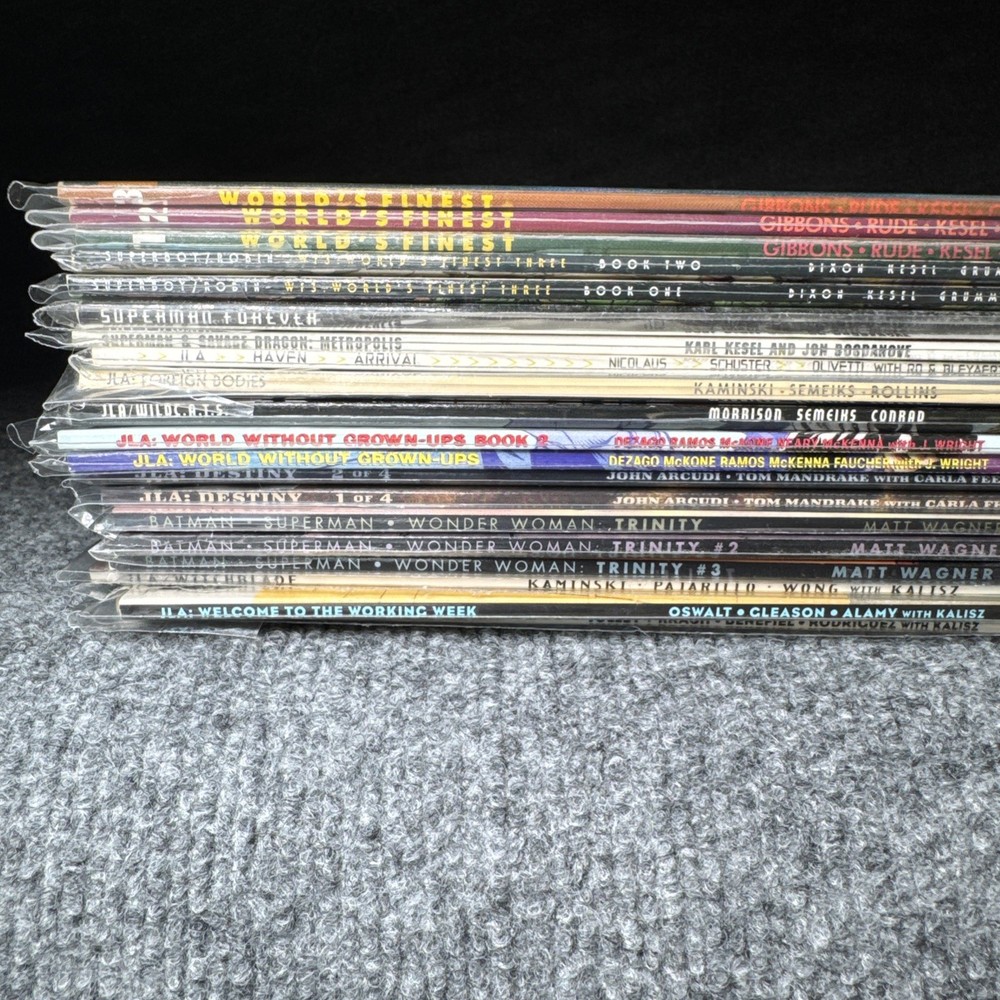 DC Justice League Graphic Novel Books Lot of 20 Paperback TPB Batman, Superman Will come with all novels shown in pictures, all are in excellent condition, will come with protective sleeves. Feel free to ask any questions about this item, all of our items come from a smoke free environment.