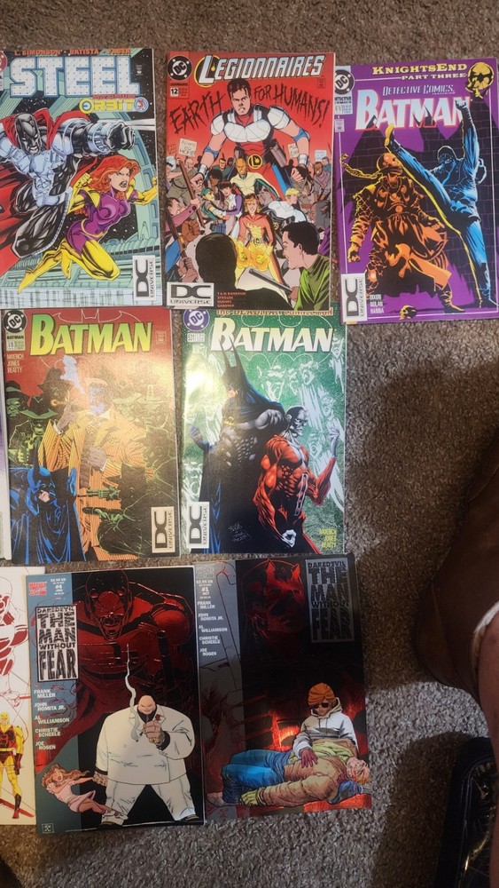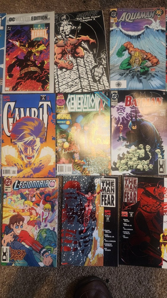 Comic Book Lot — 27 Issues (1990s DC & Marvel)This is a mixed lot of DC and Marvel comics from the 1990s. Includes multiple series, characters, and special covers. Titles in this lot:Batman (#511 DC Universe logo variant, #531 Glow-in-the-Dark Deadman cover)Detective Comics (KnightsEnd / Prodigal era)Batman: Sword of Azrael #1 Silver EditionAquaman #1 (1994 relaunch — “Into the Abyss”)Daredevil: The Man Without Fear #1–5 (Frank Miller / John Romita Jr.)Gambit #1 (1993 mini-series)Generation X #1 (1994 chromium cover)Superboy #11Justice League America #98Steel (various issues, DC Universe logo)Superman (Man of Steel, Hunter/Prey, Worlds Collide)Legionnaires (multipack/DCU logo issues)X-Force (Marvel, mid-90s)Features: Variants, DC Universe logo editions, foil, chromium, and glow-in-the-dark covers.What you get: Exactly the 27 books shown in the photos. Mixed lot of DC and Marvel, mostly superhero titles, all from the 1990s.