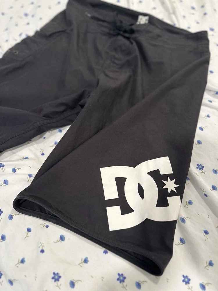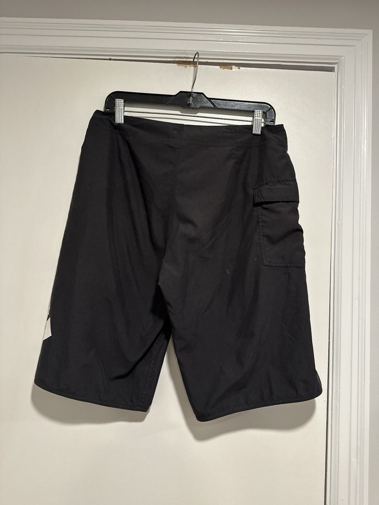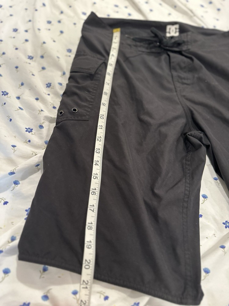 DC Shoes Sz:32 Lanai Black w/ White Logo Swim Trunks boardshorts Surfer Skater. Velcro closure zip pocket. Drawstring waist. Great used condition. Very little wear. No rips, stain or defects. Please see pictures for measurements and best sizing. Items listed based on tag provided. For best fit please compare measurements to a garment you already have to ensure fit for your body type.