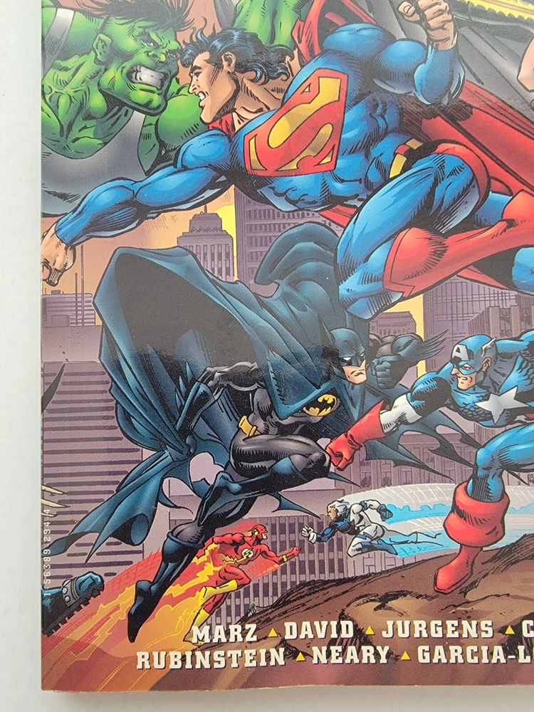This is a single issue comic book titled "DC Versus Marvel Comics 1996" featuring artwork by Dan Jurgens. It is part of the Marvel Versus DC / DC Versus Marvel series, pitting characters like Superman and Hulk against each other. Written by Peter David, this color comic book is in English and was published by Marvel Comics in 1996 as a crossover event between the two comic book universes. - Nice copy, some minor warping but still in good condition, see pictures - Bagged and boarded - Shipped with Gemini packing to insure no damage during shipping - Usps mail Check out our 1000s of comics in our store We combine shipping