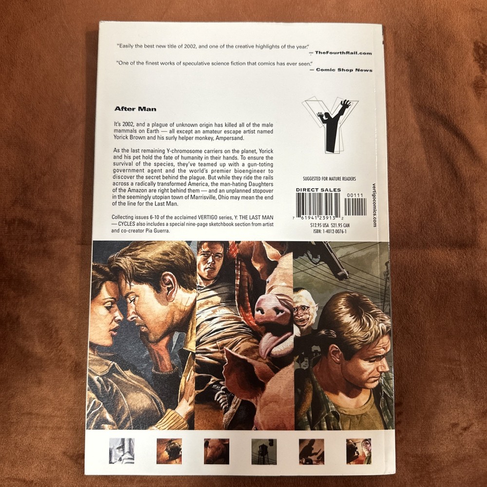 The product is a trade paperback version of the second issue of the serialized graphic novel "Y The Last Man" by writer Brian K. Vaughan and artist Pia Guerra. Published by DC Vertigo in 2003, this modern-age US comic features the character Vertigo and is written in English. The cover art was done by Pia Guerra, making it a key visual element of the series. This trade paperback format allows for a convenient and comprehensive collection of the story for fans of the series or those looking to delve into the dystopian world of "Y The Last Man."
