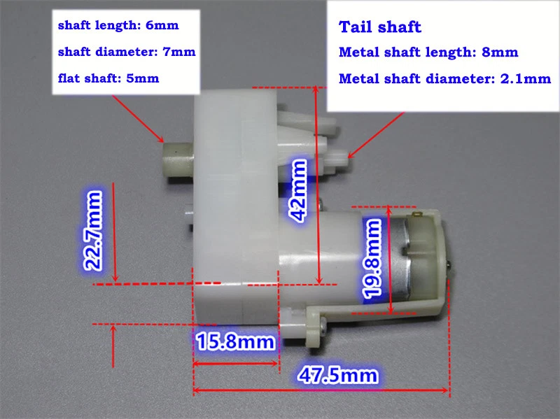 Shaft Diameter: 7mm(flat shaft 5mm) Country/Region of Manufacture: China gtin13: Does not apply Model: 130 Gear Motor Actual Rated Input Voltage: 5V-12V Nominal Rated Input Voltage: 6 V, 9 V, 12 V Current Type: DC MPN: Does Not Apply Brand: VIGOR Base RPM: 30RPM-82RPM UPC: Does not apply Type: Gearmotor