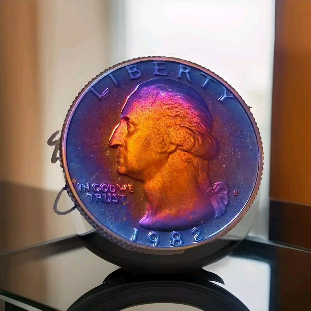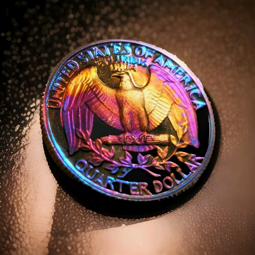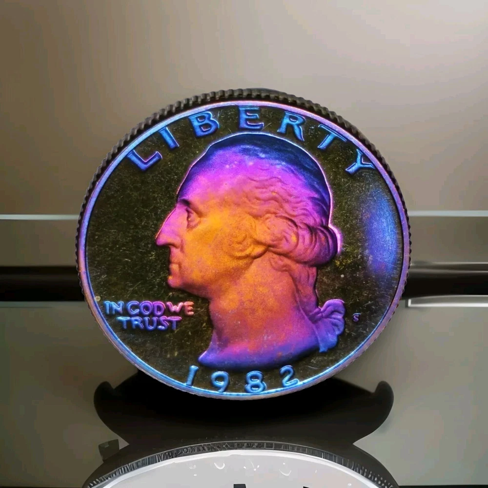 DCAM 1982 S Proof Washington Quarter Artistically Rainbow Toned BRIGHT I will combine shipping and you will only ever pay what it actually costs to ship.