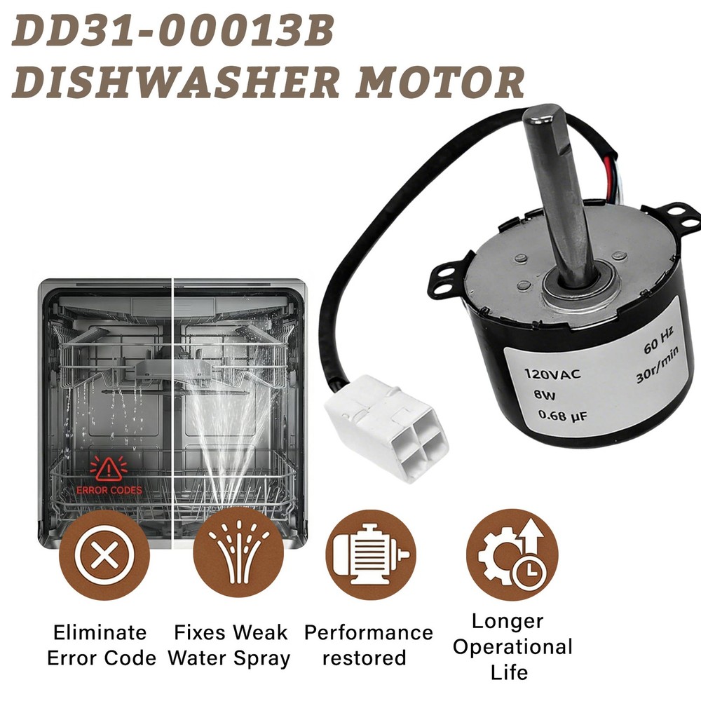 Store Categories Store Categories DD31-00013B Dishwasher Geared Motor for Samsung Dishwasher Product Description 【Cross Replacement Part Number】- Replacement for numbers 4000924, AP5917177,EAP9606349, PS9606349,Designed to fit specific manufactured dishwasher models 【Solve A Problem】- 1: Dishwasher has dirty dishes after running. 2: Spray arm does not rotate. 3: Shower arm cannot start and works slowly and smoothly. 4: Solve the code error problem of dishwasher 【Product functional parameters】- DD31-00013B turns the belt to move the WaterWall spray arm forward and backward inside the tub, The motor shaft is made of stainless steel to prevent rust and corrosion.Motor parameters:120V | 60Hz | 30 RPM | 8.0W|4 Pin Molex Plug Attached|D Shaped Shaft 【Product compatible models】- DW80J7550UW/AA-01,DW80J7550UW/AA-00,DW80H9930MO/AA-00,DW80H9950US/AA-00,DW80H9950US/AA-01,DW80H9930US/AA-01,DW80H9930US/AA-00,DW80M9550UG/AA-00,DW80H9970US/AA-02,DW80M9960UG/AA-00,DW80H9970MO/AA-00,DW80H9970US/AA-01,DW80J7550US/AA-00,DW80H9970US/AA-00,DW80J7550US/AA-01,DW80J9945US/AA-00,DW80J9945US/AA-01,DW80M9550US/AA-00,DW80H9940US/AA-00,DW80J7550UG/AA-02,DW80H9940US/AA-01,DW80J7550UG/AA-01,DW80J7550UG/AA-00 DW80R9950US/DW80R9950US 【Package Contents】DD31-00013B for Samsung Dishwasher Geared Motor & DD62-00053A Motor Shaft Seal Contact Us Shipping Policy Returns Policy Contact Us Please feel free to contact us if you have an issue with the part you receive. Please do not open a case directly through eBay as it will hurt the seller's good standing. We ask you to please give us the opportunity to resolve any issue you might have directly with you first. We usually reply within 24 hours, holiday and weekends might take slightly longer. Thanks for your patience, understanding and cooperatio We strike to make the buying and selling experience pleasant for both. Thank you for your time and cooperation. Shipping Policy The item will be shipped within 48 hours on payment received except the holidays.(except weekends & official holidays). You can log on to eBay to check your logistics tracking number.Please confirm address before purchase, and cannot change address once purchased. If you need to receive the item quickly, please contact us, you can pay the postage to choose other logistics. Returns Policy Please contact us first when return, exchange and refund is required. Any direct return of purchased items will not be processed. Item must be returned in new condition, as received with all accompanied accessories and literature, including the factory carton. Shipping, handling is not refundable unless item is returned because of defect. Copyright © 2023 Dianxiaomi