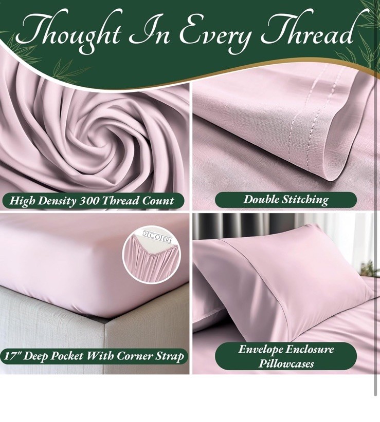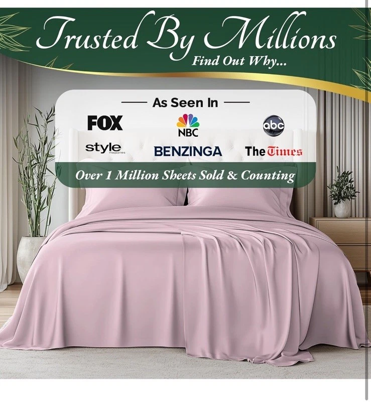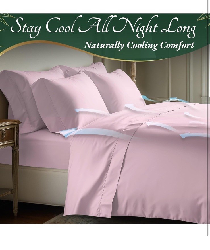 New item! UNMATCHED COMFORT & SOFTNESS: Our unique 100% viscose derived from bamboo sheets king size deliver an unparalleled softness and a smooth, luxurious texture. OEKO-Tex Certified viscose derived from bamboo bed sheets are silky-smooth & naturally hypoallergenic SLEEP IN COOLING BLISS: Elevate your sleep with viscose derived from bamboo cooling sheets. Naturally temperature regulating bed sheet set, moisture-wicking, and innovative Breezweave technology for breathability. Luxury sheets for ultimate relaxation BUILT TO LAST: Our king sheets set is made from 100% viscose derived from bamboo that withstands longer wash cycles and is fade-resistant. Precise double stitching on sheets provides lasting durability and exceptional strength PERFECT FIT FOR All BEDS-6-PIECE SET: Discover the ultimate fit with our king size sheets set tailored for standard mattress dimensions, with a deep 17" pocket for extra-thick mattresses. Package Includes 1pcs Flat Sheet (108x102) inch, 1pcs Fitted Sheet (78x80) inch, 4pcs Pillow Cases (20x40) inch
