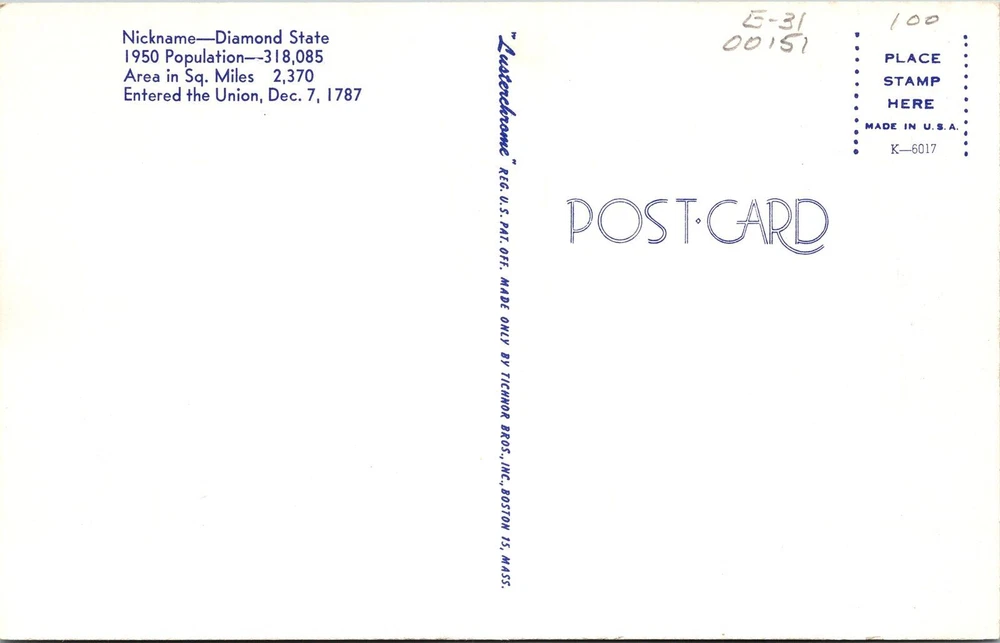 City: Delaware Type: Printed (Lithograph) Country: USA Country/Region of Manufacture: Unknown Region: Delaware Postage Condition: See Image Original/Licensed Reprint: Original Unit of Sale: Single Unit Era: Chrome Subject: Cities & Towns Theme: Cities & Towns