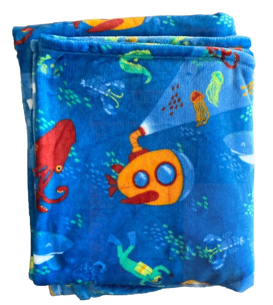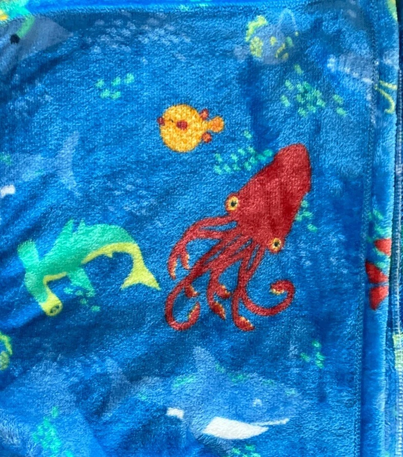 DEEP SEA Creatures Blue Oversized Plush 5x6' THROW BLANKET The Big One Kids